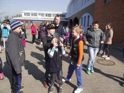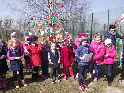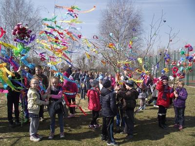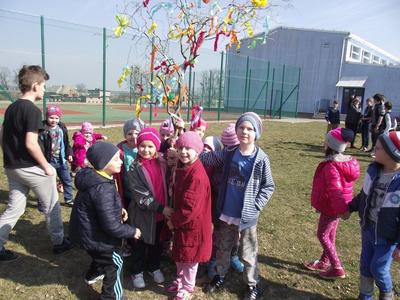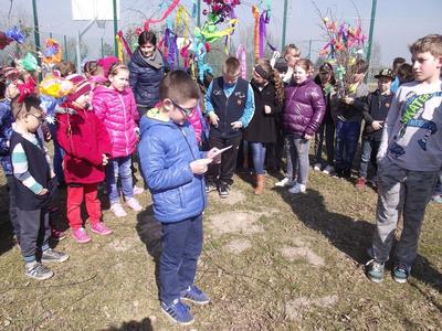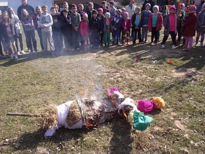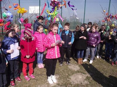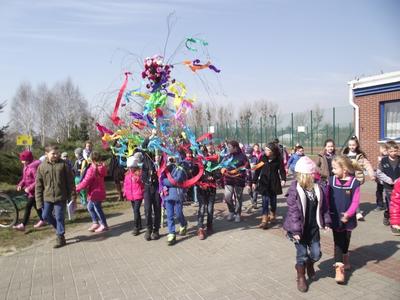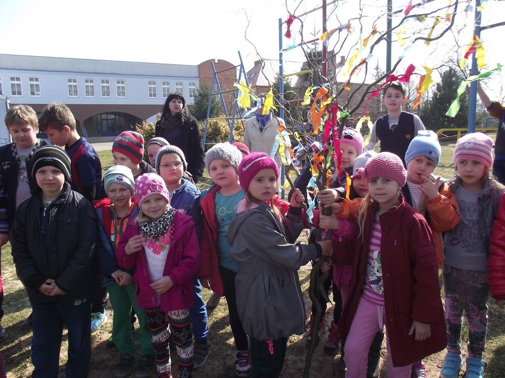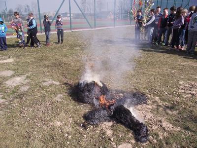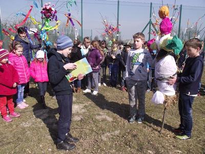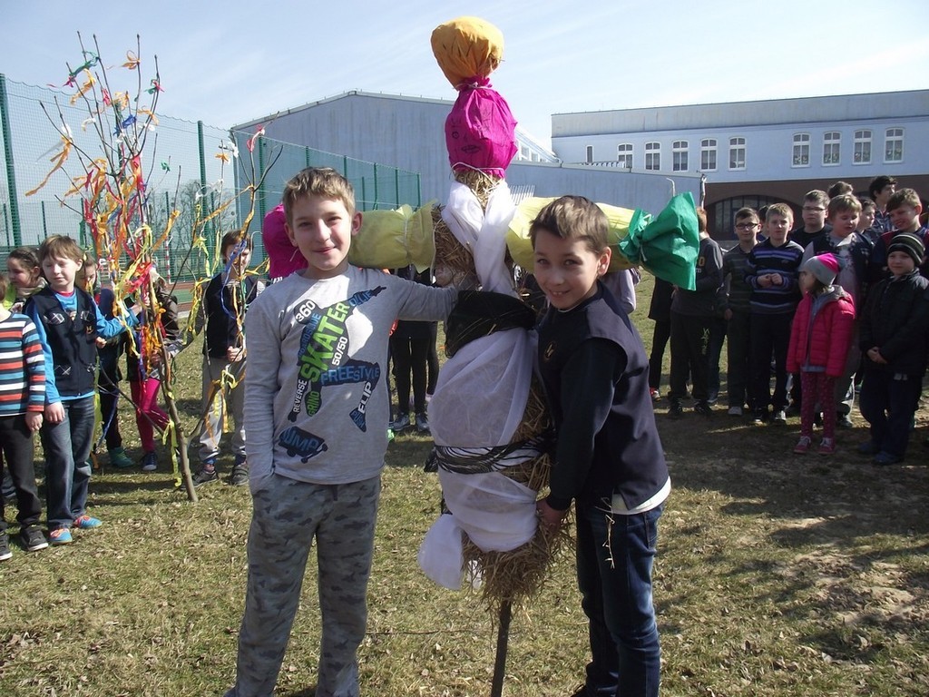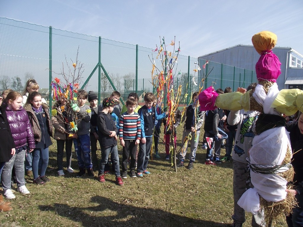 Witanie wiosny łączyło się w tym roku z zaćmieniem częściowym Słońca. Już od rana prowadziliśmy obserwacje tego rzadkiego zjawiska. pogoda na szczęscie dopisała i dzięki kliszom i czarnym szkłom proces zaćmienia był doskonale widoczny. później odbył się apel podsumowujący I Półrocze. Zostały na nim wręczone nagrody za konkursy, jakie odbyły się w naszej szkole. Następnie wszyscy udaliśmy się na boisko, aby uczynić zadość tradycji i spalić Marzannę. Uczniowie klasy II przygotowali wierszyki i piosenki na tą okazję. do występów przyłączyła się klasa I i III. Wszystkie klasy przygotowały wspaniałe gaiki, które