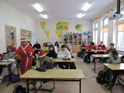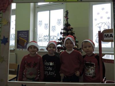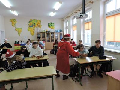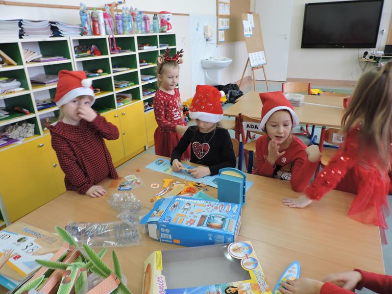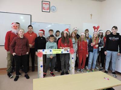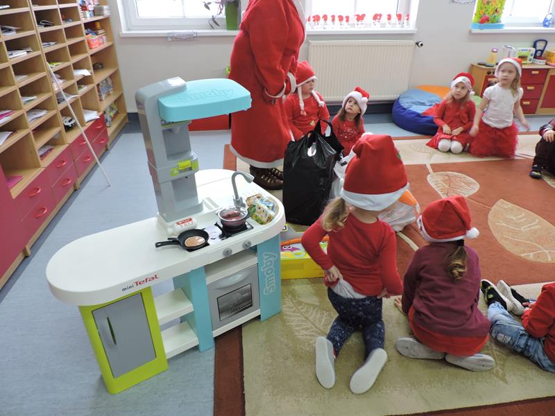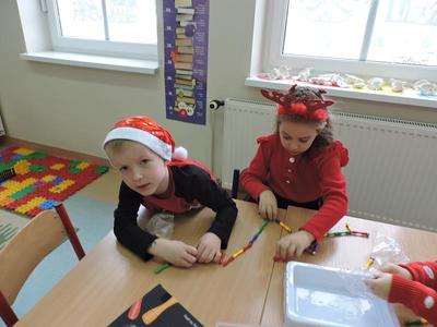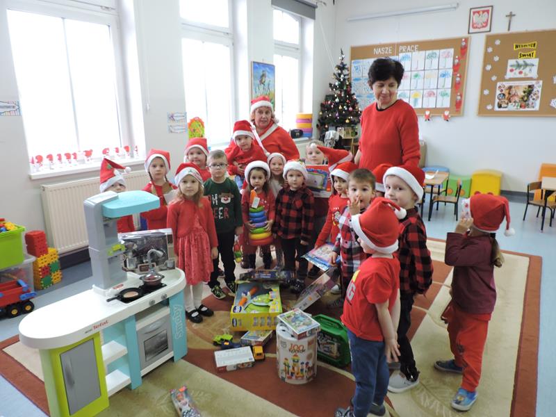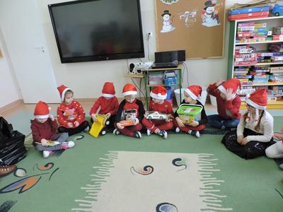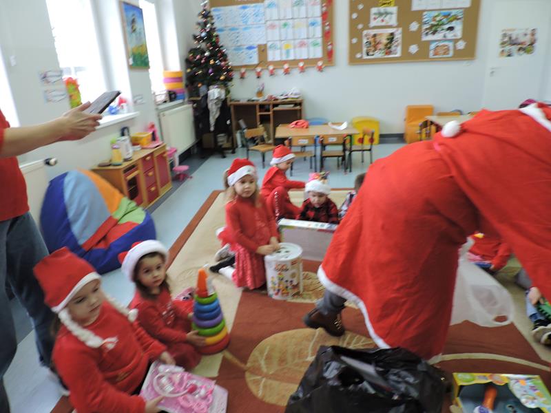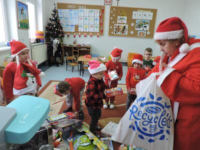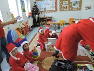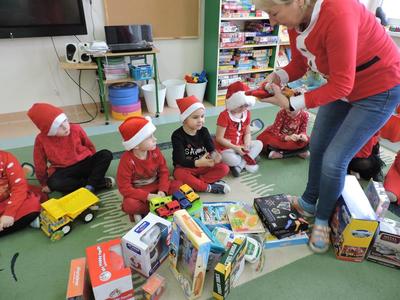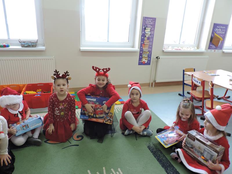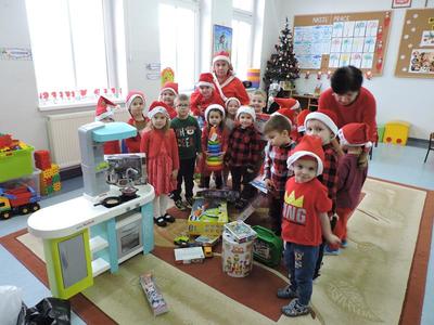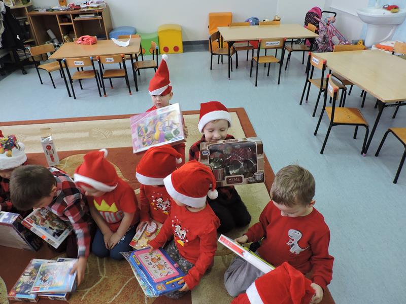 W dzisiejszy Mikołajkowy dzień w szkole i przedszkolu od rana pojawiali się Mikołaje i piękne Mikołajki. Dzieci bardzo zaangażowały się w „bycie Mikołajami” i przyszły w mikołajowych czapkach i czerwonych strojach. Zerówkowicze i przedszkolaki z niecierpliwością oczekiwały przyjścia Mikołaja, mając nadzieję, że przyniesie prezenty. I oczywiście doczekali się – co prawda Mikołaj nie przybył osobiście, ale w zastępstwie wysłał panią Lidkę i to ona wręczyła dzieciom prezenty. Było bardzo wiele radości, bo w tym roku prezentów było bardzo, bardzo dużo. Przedszkolaki dostały nową kuchnię z akcesoriami, lalki, samochody, puzzle, tablice magnetyczne. Zerówkowicze dostali dwa zestawy Playmobil, klocki Korbo, klocki magnetyczne, lalki, nowe garnki do kuchenki, mikser, ekspres do kawy, samochody, a także grę Twister. Dzieci tak wciągnęła zabawa nowymi zabawkami, że nie chciały iść do domu. Na spotkanie z wysłannikiem Mikołaja "załapała" się klasa VIII. Dziękujemy, Mikołaju!