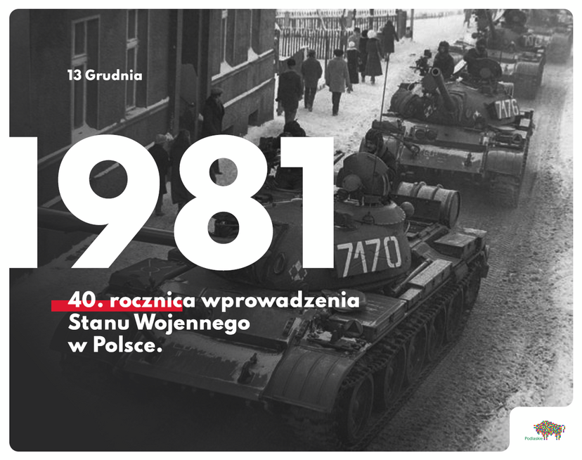 13 grudnia 2021 roku przypada 40. rocznica wprowadzenia w Polsce stanu wojennego. Ogłoszony niezgodnie z konstytucją stan nadzwyczajny zaowocował internowaniem ponad 10 tysięcy działaczy opozycji antykomunistycznej, tysiące kolejnych było inwigilowanych i zastraszanych. Władzę w kraju przejęła junta wojskowa pod przywództwem generała Wojciecha Jaruzelskiego. Celem reżimu komunistycznego było zniszczenie wielomilionowego ruchu "Solidarności". Co najmniej kilkadziesiąt osób straciło wtedy życie...