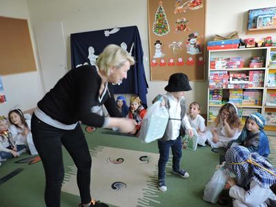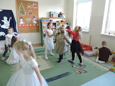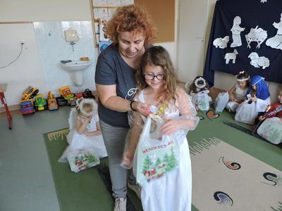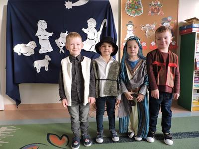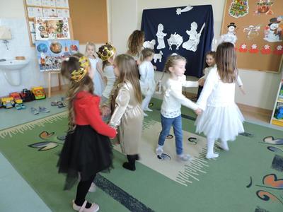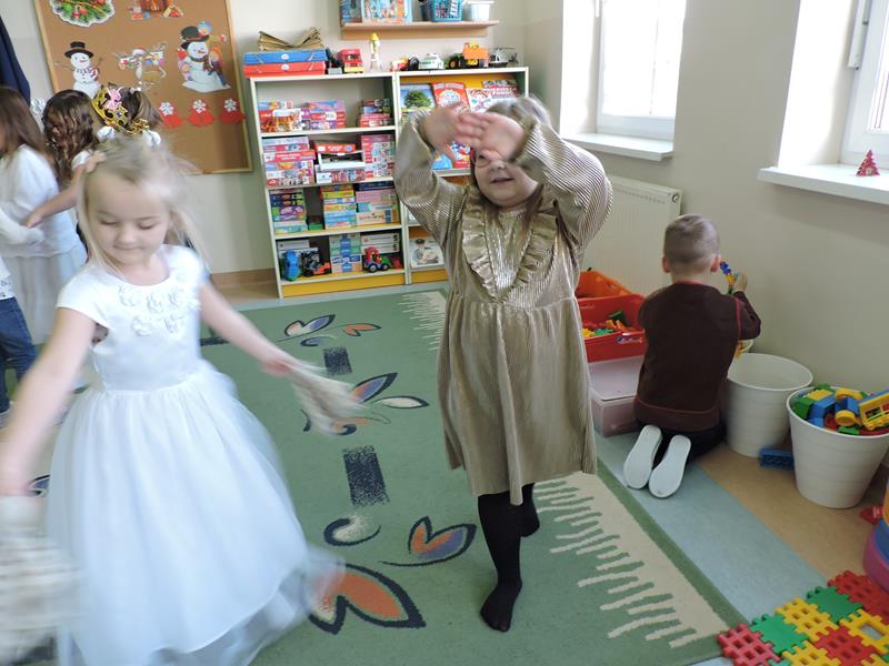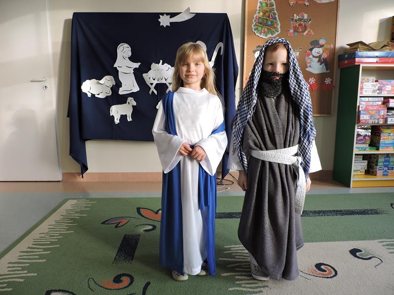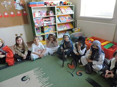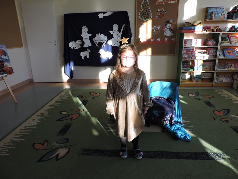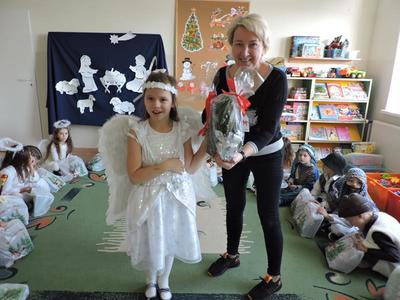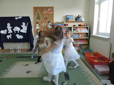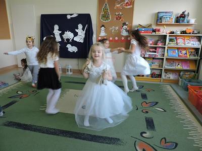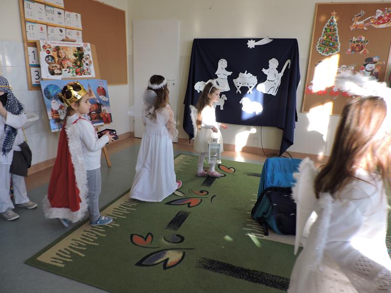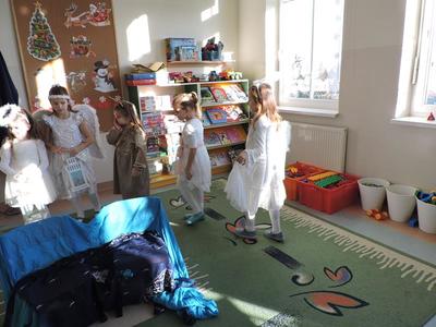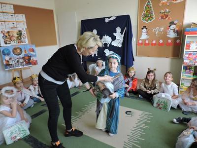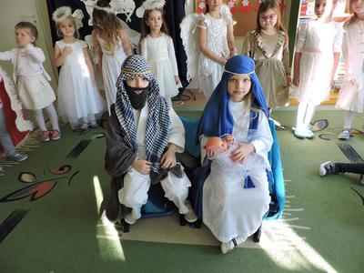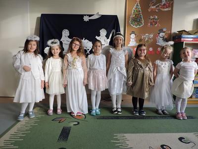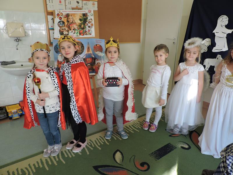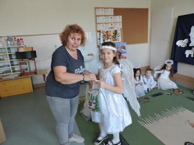 Tradycyjnie, jak co roku, zerówkowicze przygotowali jasełkowe przedstawienie. W tym roku swój występ nagrywali, aby mogli obejrzeć go rodzice, koledzy, koleżanki. Na szczęście na widowni zasiadła Pani Dyrektor, która swą obecnością sprawiła dzieciom dużą radość. Dzieci bardzo profesjonalnie przygotowały się do występu – pięknie wyuczyły się swoich ról, a dzięki zaangażowaniu rodziców wystąpiły w pięknych strojach. Występ był bardzo udany. Po występie na dzieci czekała niespodzianka – prezenty od Świętego Mikołaja. Dzień zerówkowicze zakończyli „Anielskimi tańcami” przy kolędach.