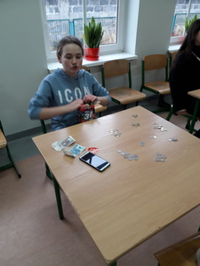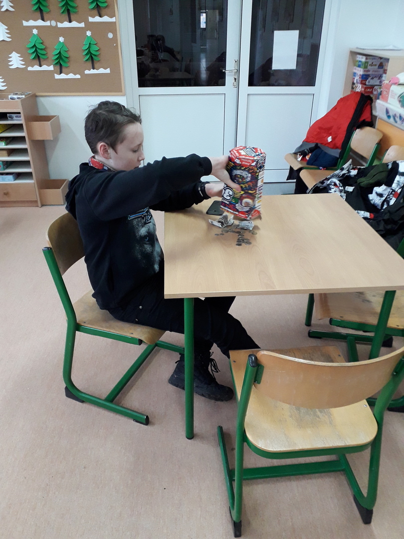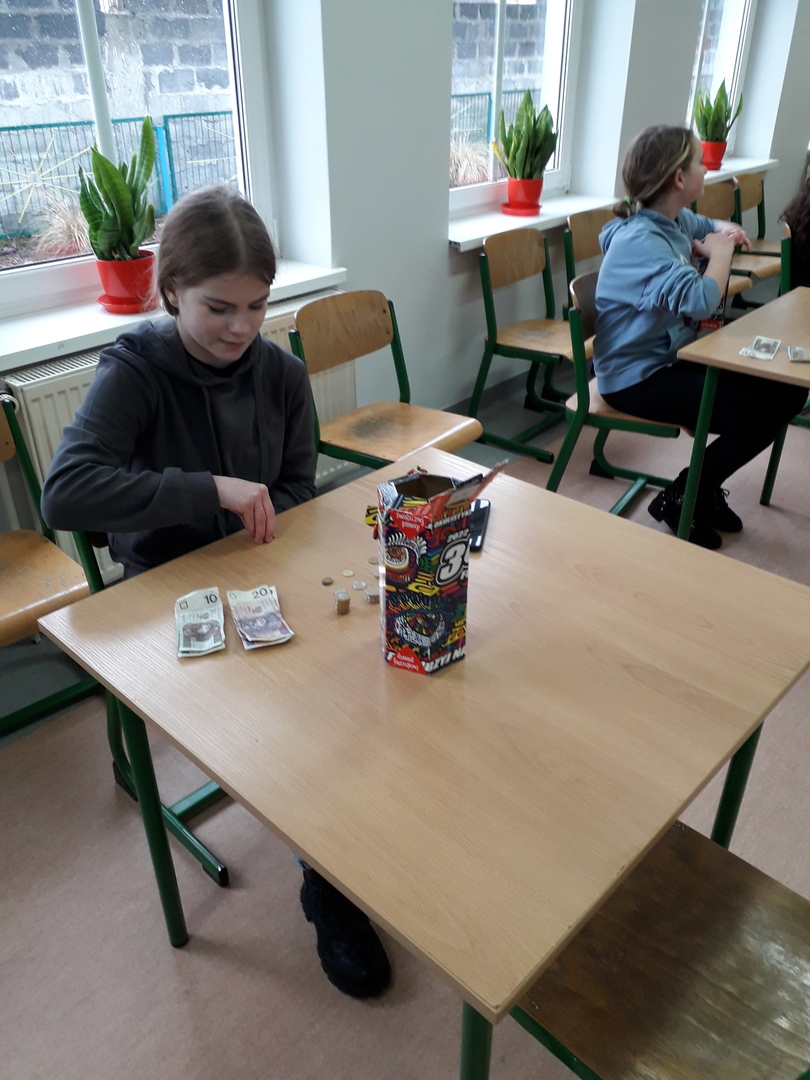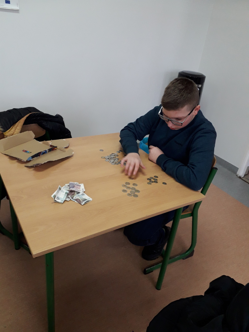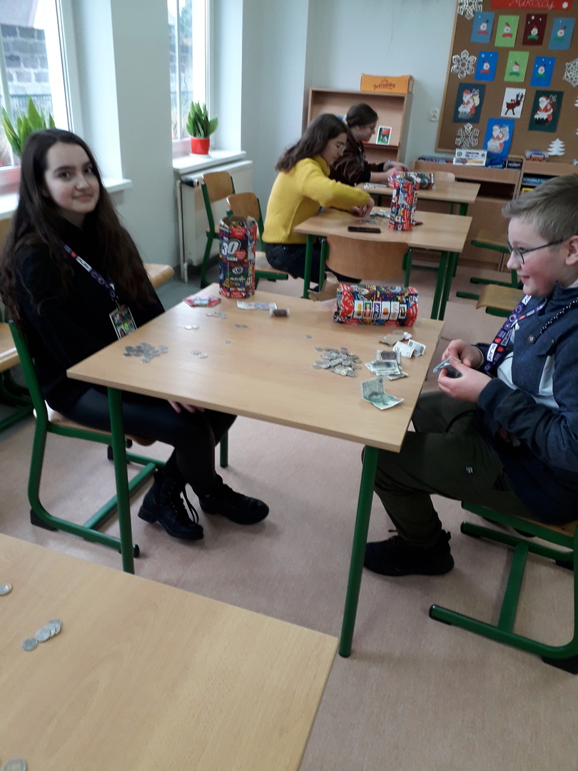 11 wolontariuszy - uczniów z kl.VII i kl.VIII zebrało w Kucharkach: 1726,84 zł oraz 2,03 E.