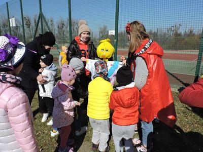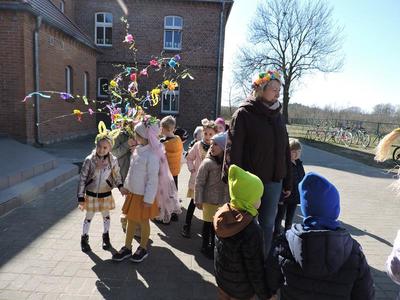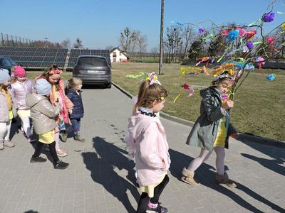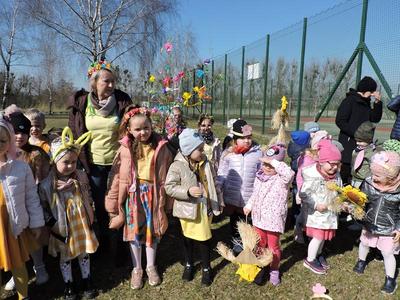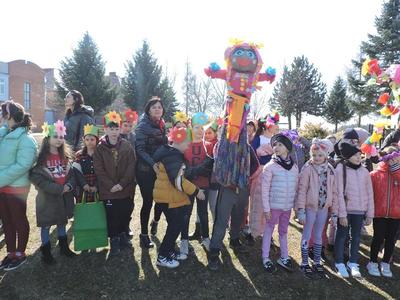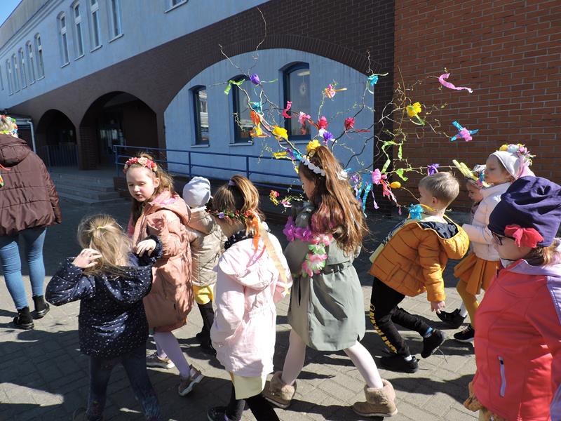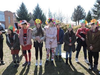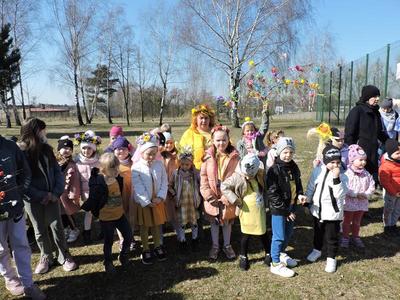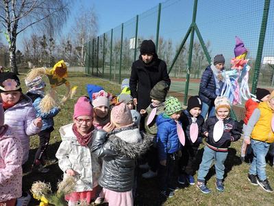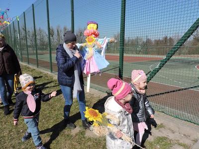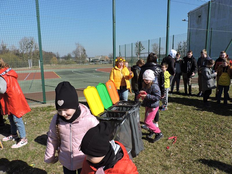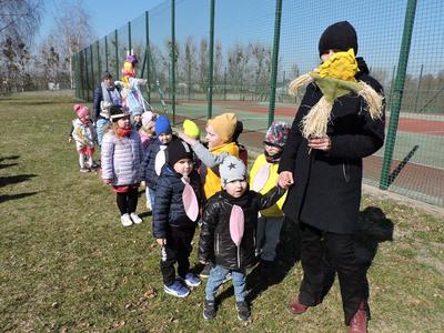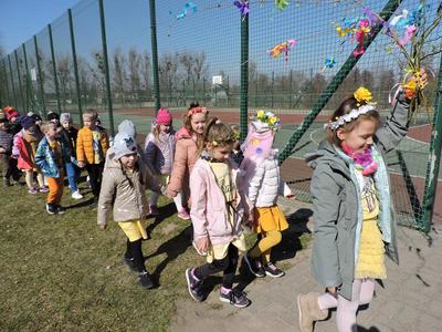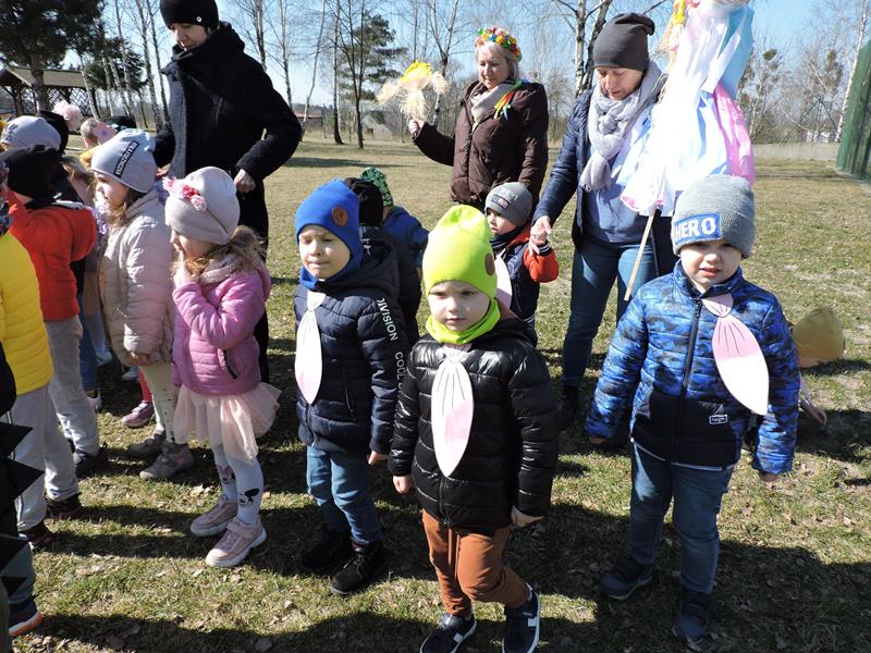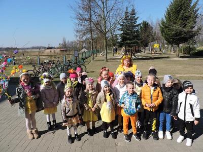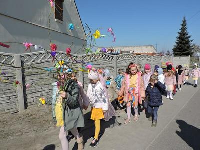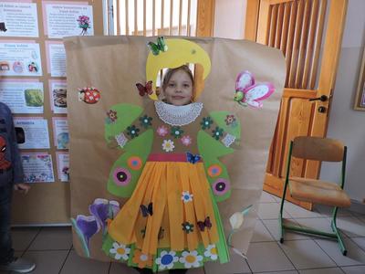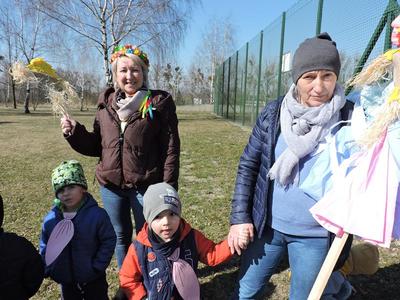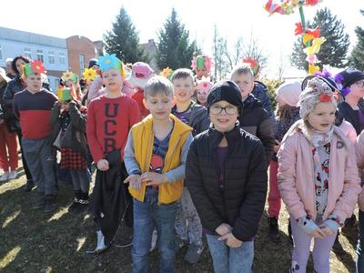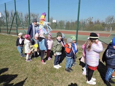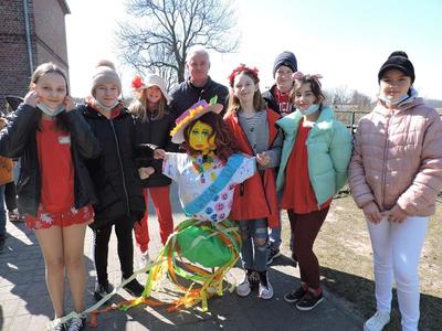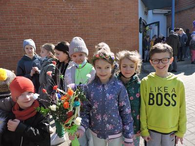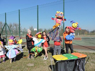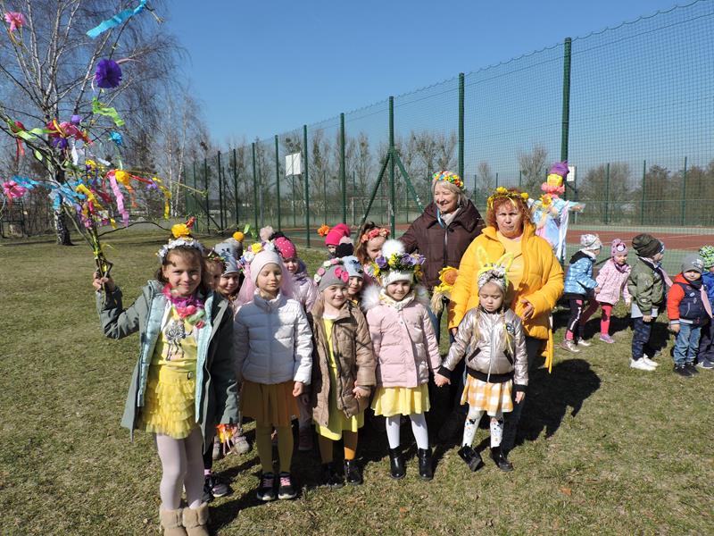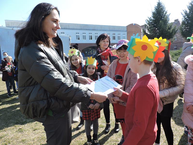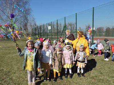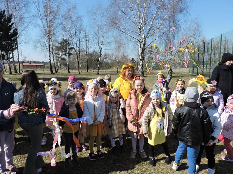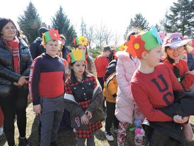 Dziś pierwszy dzień kalendarzowej wiosny. Tradycyjnie więc cała społeczność naszej szkoły wyszła barwnym korowodem na boisko, aby pożegnać zimę reprezentowaną przez Kukłę Marzanny i powitać Wiosnę symbolicznym Gaikiem. Aby było ekologicznie przedstawiciele klas posegregowali Marzanny do odpowiednich pojemników na śmieci. Zerówkowicze oraz uczniowie klas I – III zaśpiewali piosenki o tematyce wiosennej. Do wspólnego śpiewania włączyli się również uczniowie klas starszych z piosenką „Wiosna”. Dzisiejszego dnia uczniowie poszczególnych klas przyszli do szkoły ubrani w barwy, które klasa kilka dni temu wylosowała. Podczas witania wiosny została wybrana najbardziej kolorowa klasa. Zwyciężyła klasa III, tuż za nimi uplasowała się zerówka. W szkole na korytarzu stanęła Fotobudka – postać Pani Wiosny. Wszyscy chętni mogli zrobić sobie zdjęcie i przez chwilę być Wiosną.
