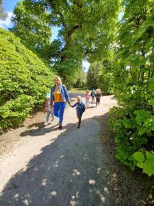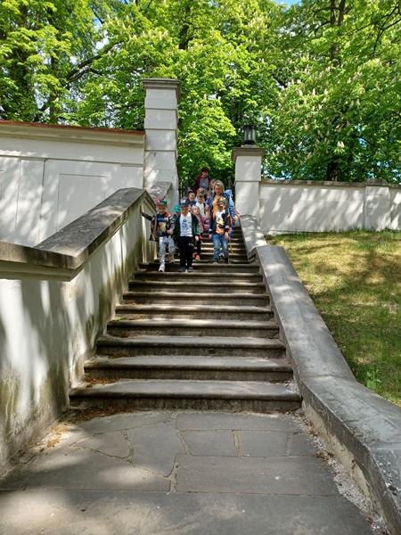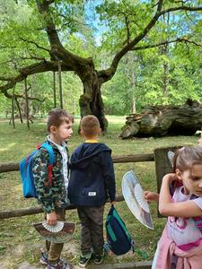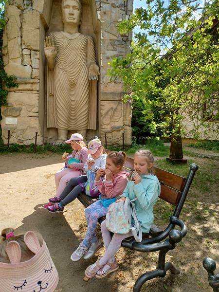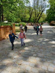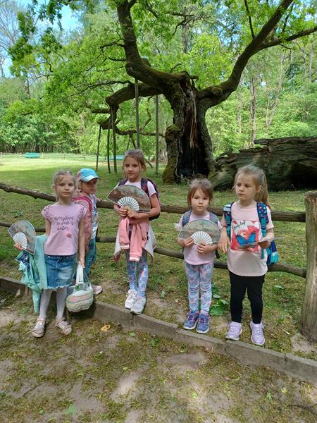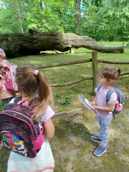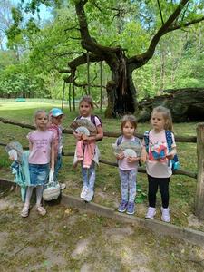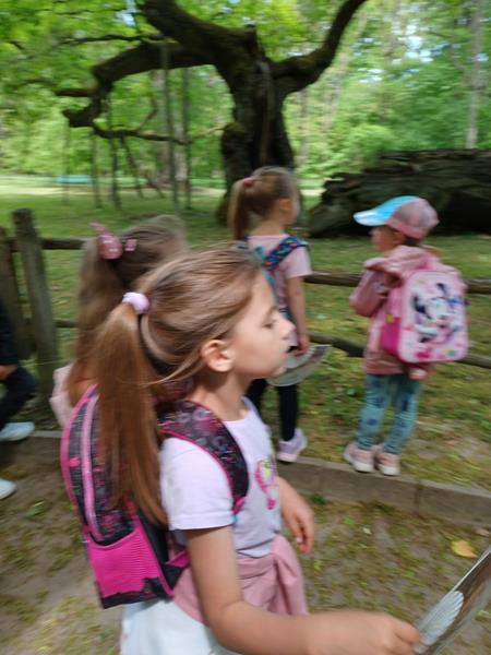Na koniec pobytu w Rogalinie odbyły spacer po ogrodzie, zaliczając roślinny labirynt i oczywiście odwiedzając słynne rogalińskie dęby – Lecha, Czecha i Rusa. Wiek i wielkość drzew zrobiła duże wrażenie.