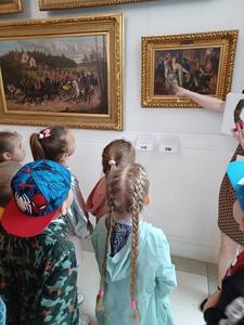 W Rogalinie dzieci odwiedziły Galerię Malarstwa, gdzie uczestniczyły w warsztatach „W labiryncie obrazów”. W salach galerii musieli szukać na obrazach wskazanych przez przewodniczkę elementów. Mimo, że nie było to łatwe, dzieci świetnie sobie radziły i bardzo podobało im się takie spotkanie ze sztuką.