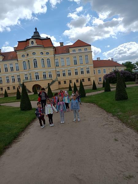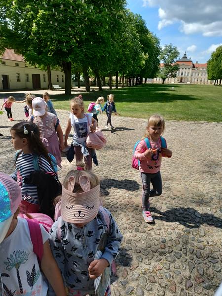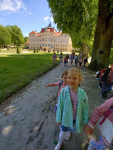 Z Puszczykowa wesoła gromada udała się do Rogalina, gdzie znajduje się piękny Pałac Raczyńskich, galeria malarstwa, ogród, park i dęby.