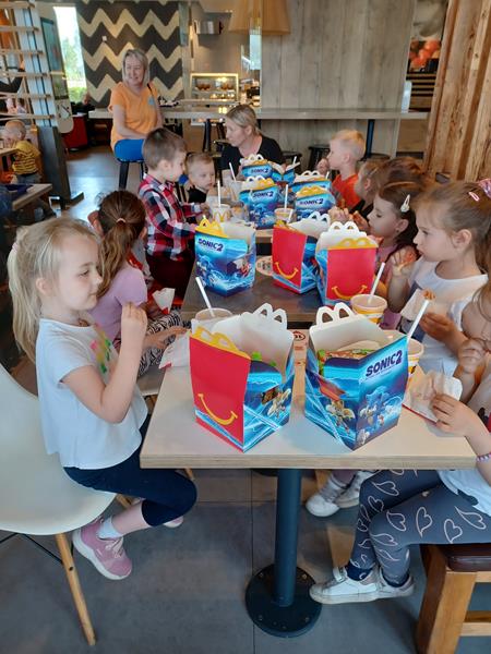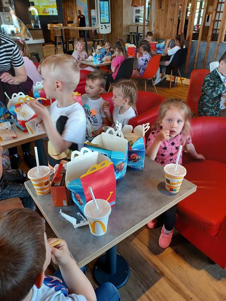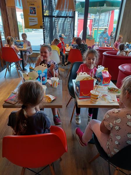 Wycieczkę mali podróżnicy zakończyli w Mc Donalds.