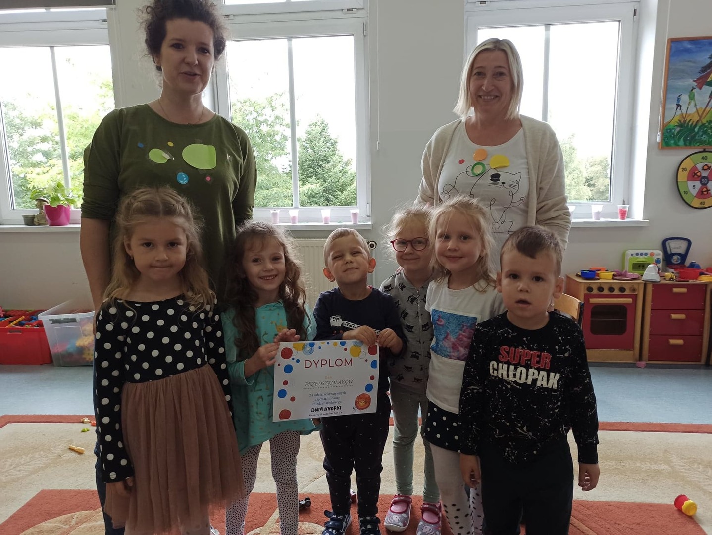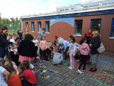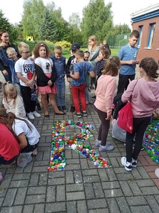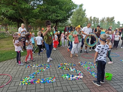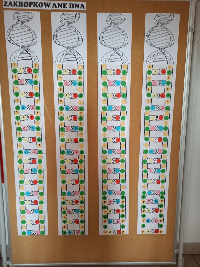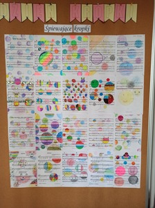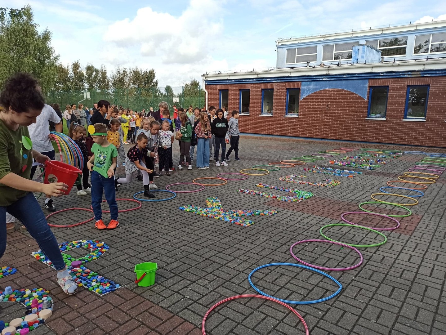 Wnaszej szkole nie zabrakło pomysłów.... Oprócz kropkowych ubrań, pojawiły się śpiewające kropki, zakropkowane DNA, kropkowe zabawy przedszkolaków i zerowkowiczów i wiele innych! Jednak największą atrakcją było wspólne układanie napisu z kropek - plastikowych nakrętek, które po dotknięciu chmur zostaną przekazane na cele dobroczynne.