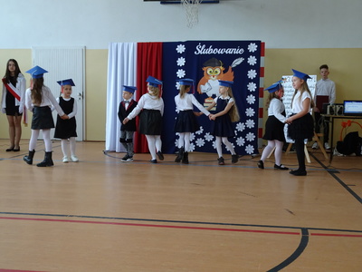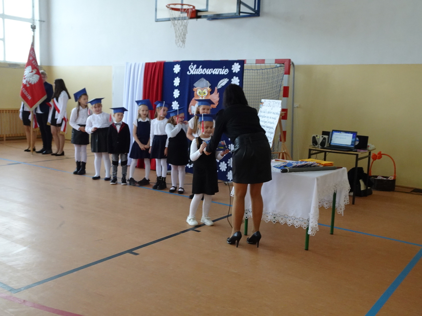 W uroczystości brali udział uczniowie klasy pierwszej wraz z wychowawczynią – panią Ewą Szymczak, rodzice dzieci, dyrektor, grono pedagogiczne oraz wszyscy pracownicy szkoły.