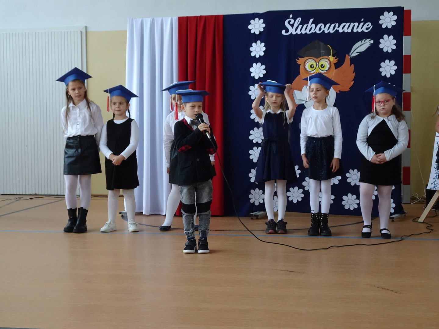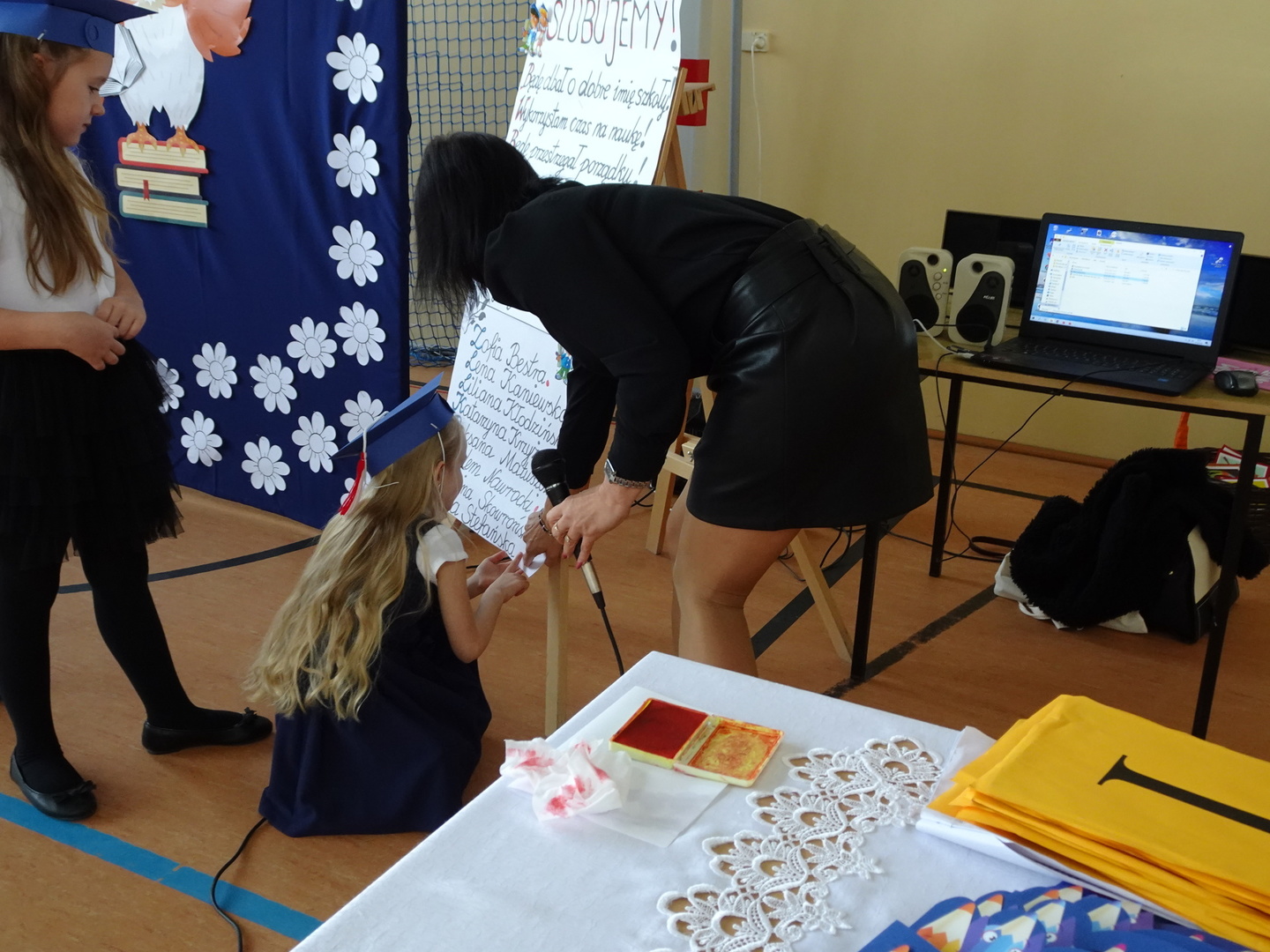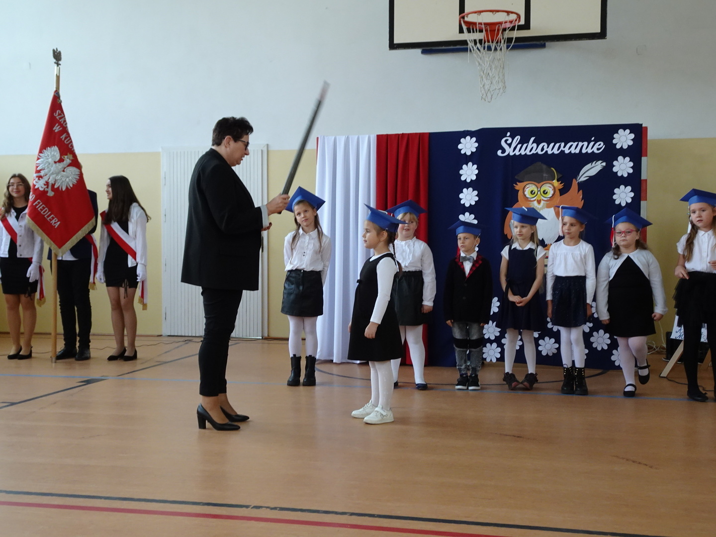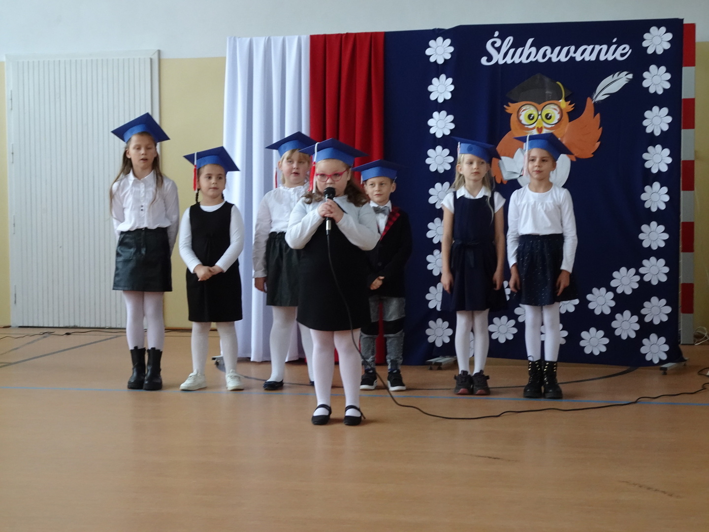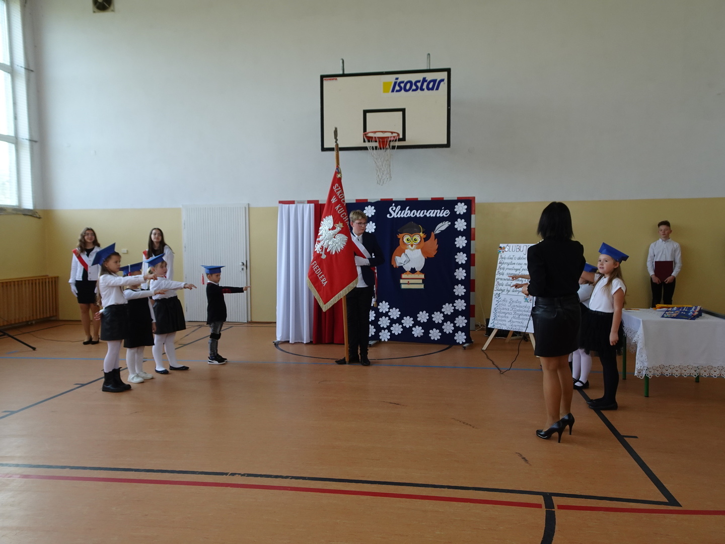W niezwykle podniosłej atmosferze, przed pocztem sztandarowym uczniowie klasy pierwszej ślubowali być dobrymi Polakami, godnie reprezentować swoją szkołę, swym zachowaniem i nauką sprawiać radość rodzicom i nauczycielom. Po złożeniu ślubowania dyrekcja szkoły dokonała symbolicznego pasowania na ucznia. Od tej chwili stali się oni nowymi członkami naszej wielkiej szkolnej rodziny!