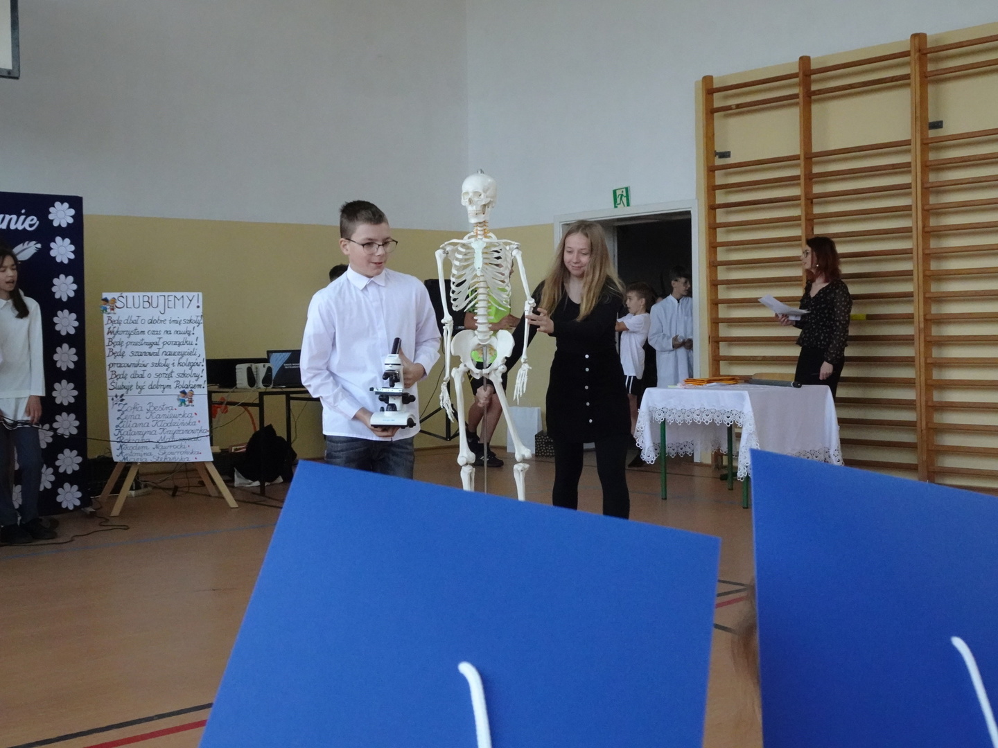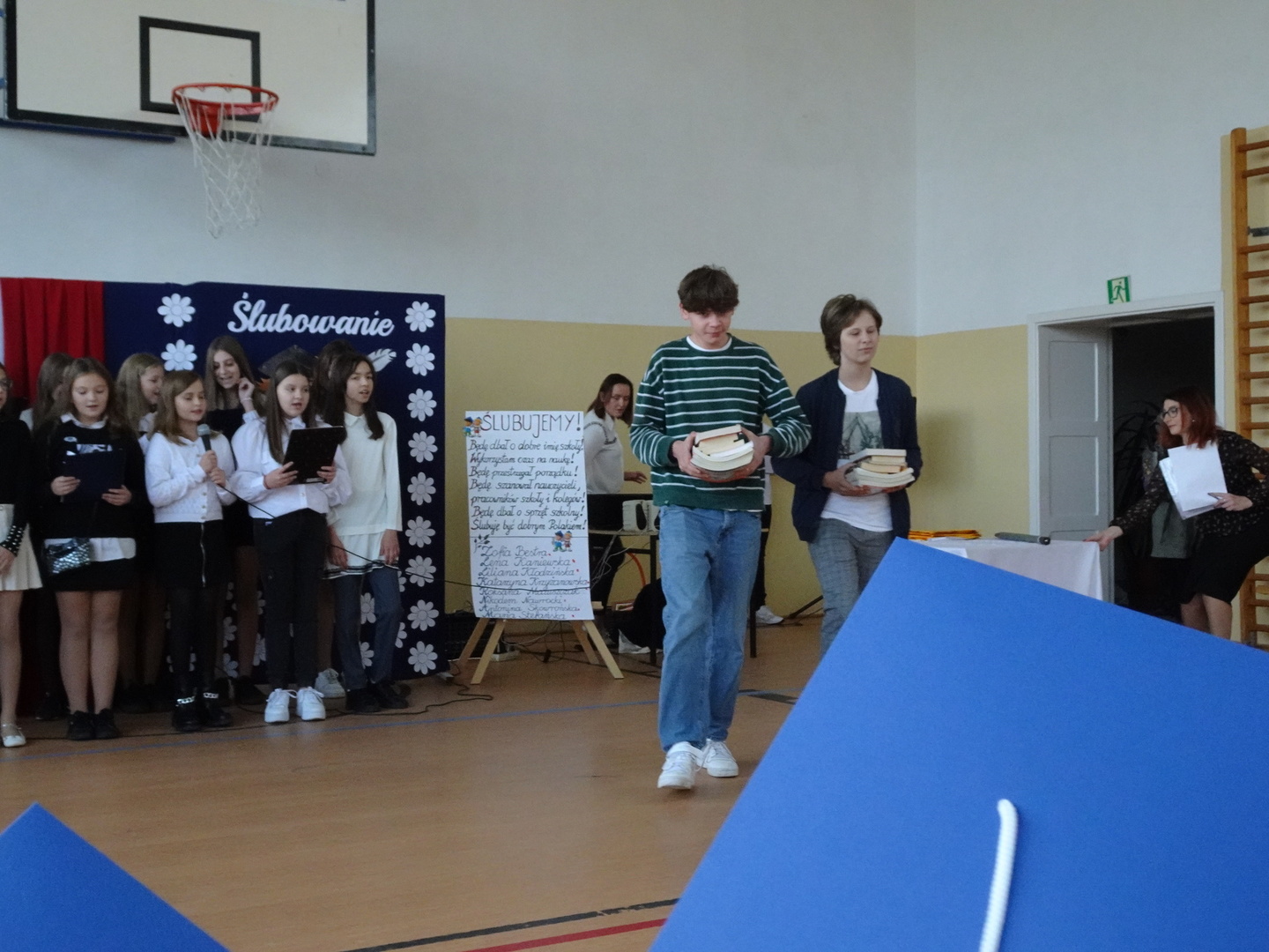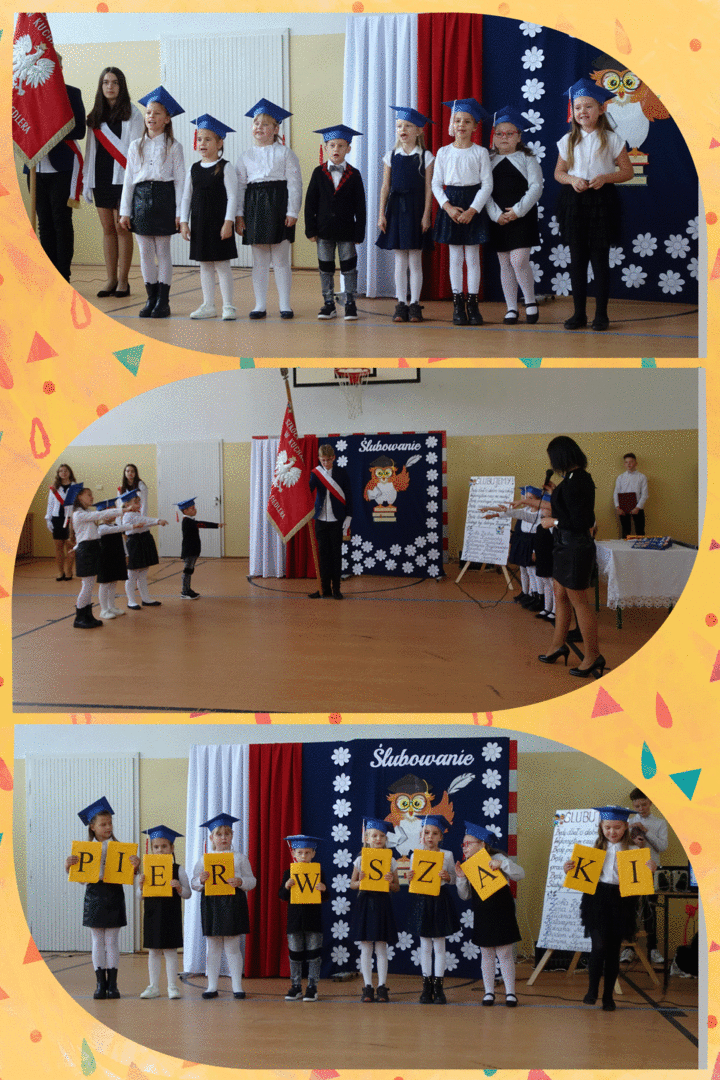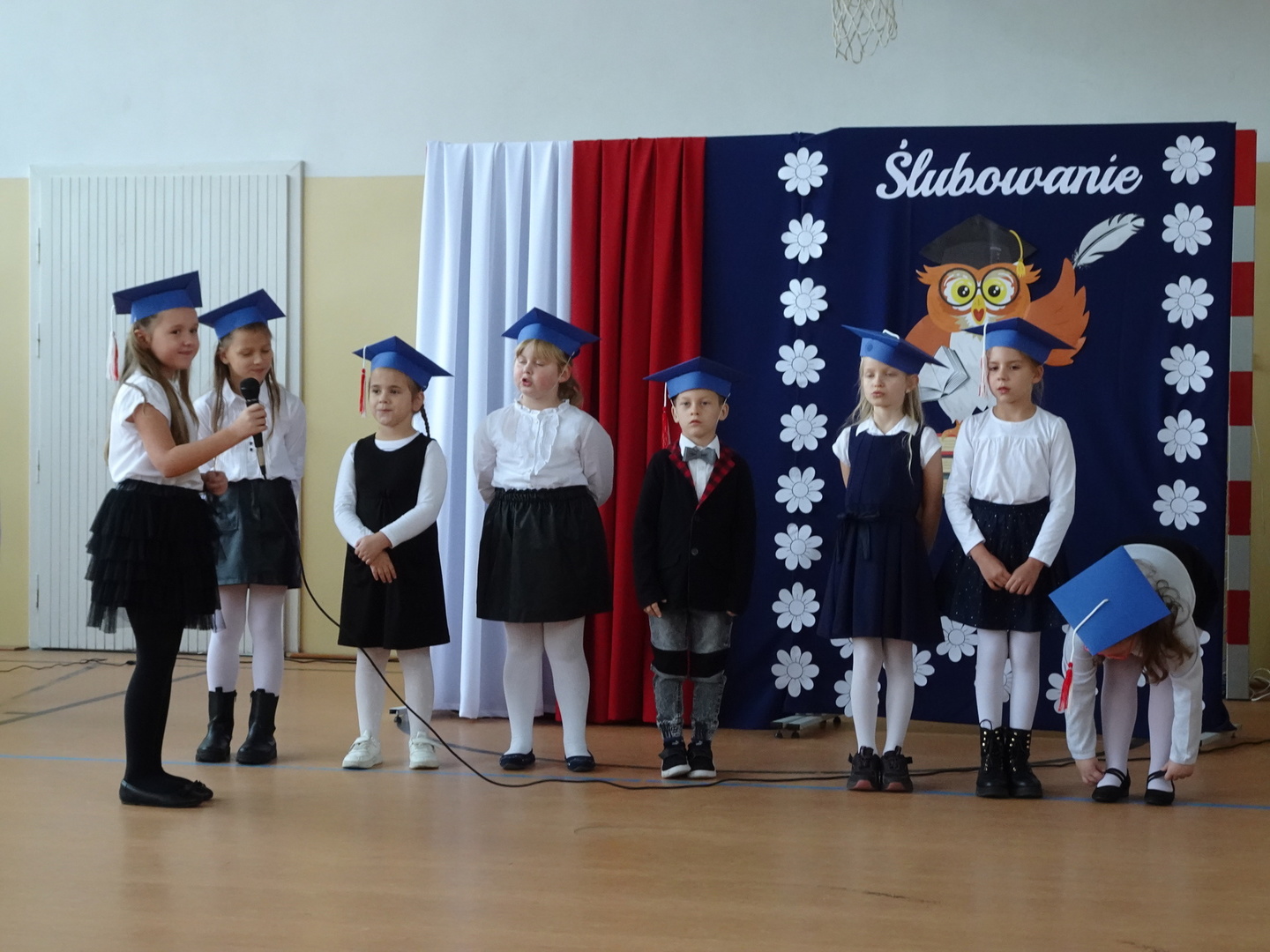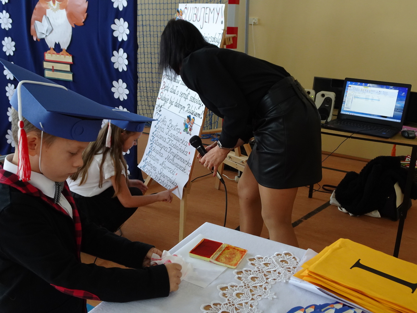 W niezwykle podniosłej atmosferze, przed pocztem sztandarowym uczniowie klasy pierwszej ślubowali być dobrymi Polakami, godnie reprezentować swoją szkołę, swym zachowaniem i nauką sprawiać radość rodzicom i nauczycielom. Po złożeniu ślubowania dyrekcja szkoły dokonała symbolicznego pasowania na ucznia. Od tej chwili stali się oni nowymi członkami naszej wielkiej szkolnej rodziny!