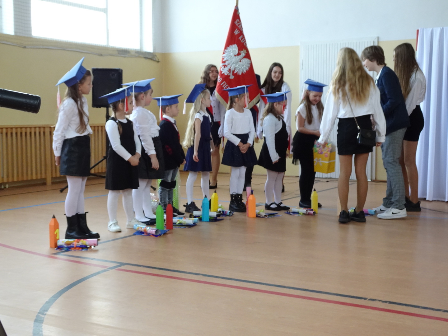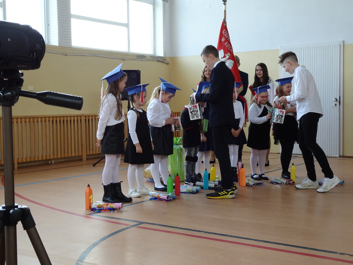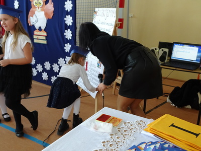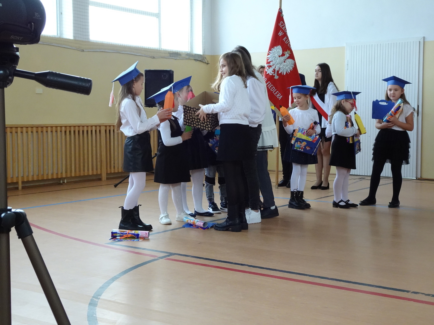 Na początku uroczystości odbyła się część artystyczna w wykonaniu pierwszoklasistów. Pani dyrektor złożyła życzenia wielu sukcesów w nauce wszystkim uczniom. Potem uczniowie otrzymali pamiątkowe dyplomy. Przedstawiciele starszych klas wręczyli pierwszakom drobne upominki.