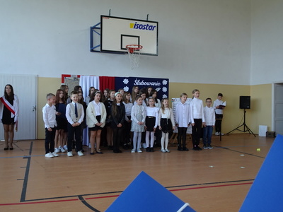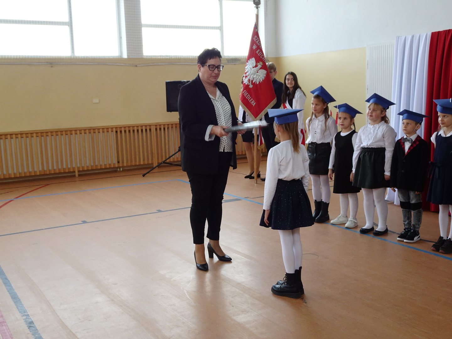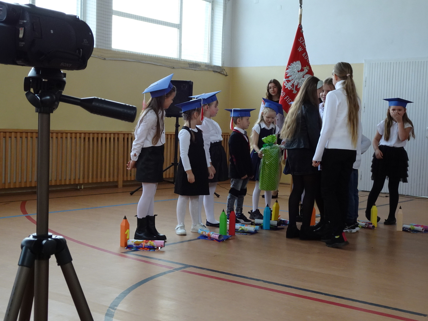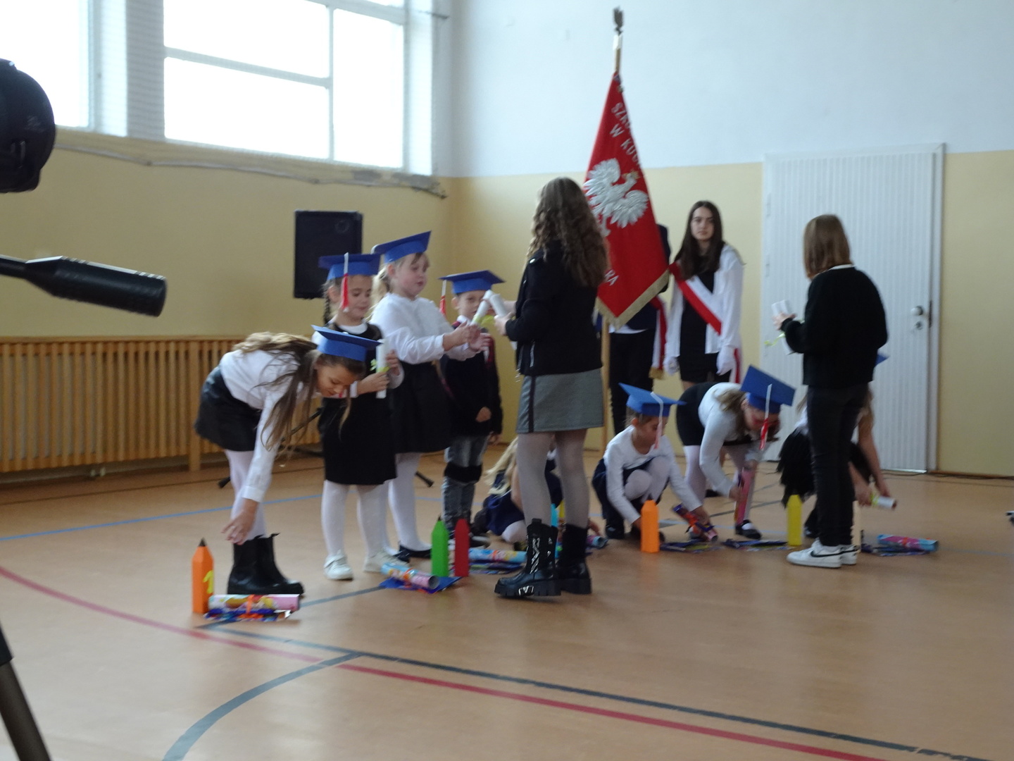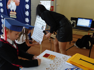 Na początku uroczystości odbyła się część artystyczna w wykonaniu pierwszoklasistów. Pani dyrektor złożyła życzenia wielu sukcesów w nauce wszystkim uczniom. Potem uczniowie otrzymali pamiątkowe dyplomy. Przedstawiciele starszych klas wręczyli pierwszakom drobne upominki.