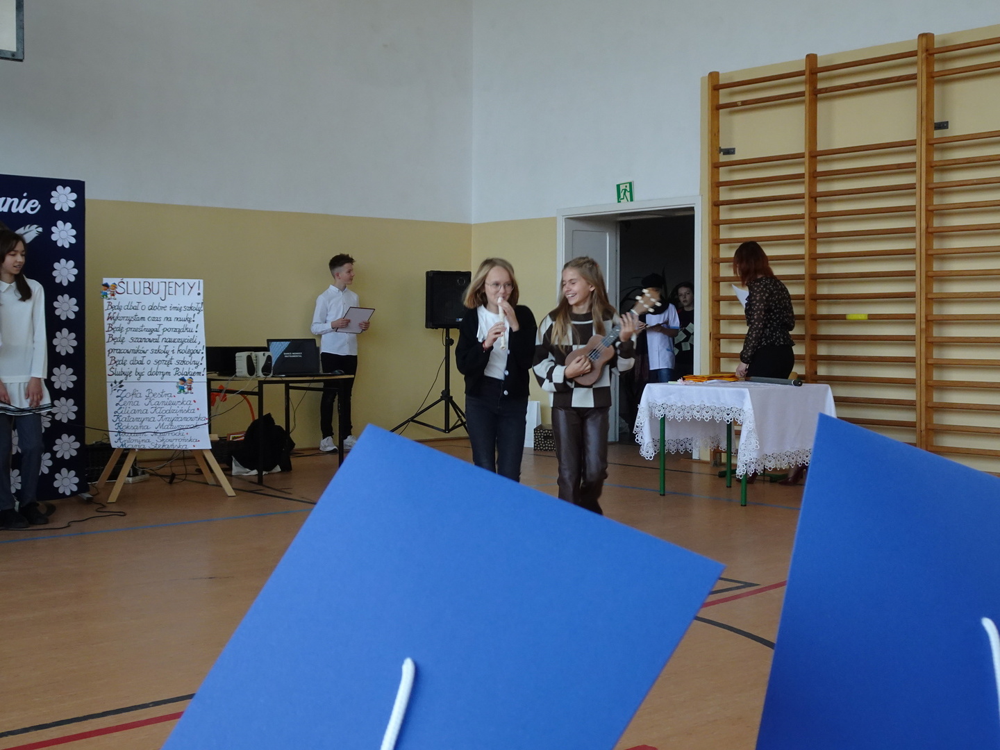 W tym dniu w naszej szkole odbyło się także ślubowanie na uczniów dzieci z klasy I.