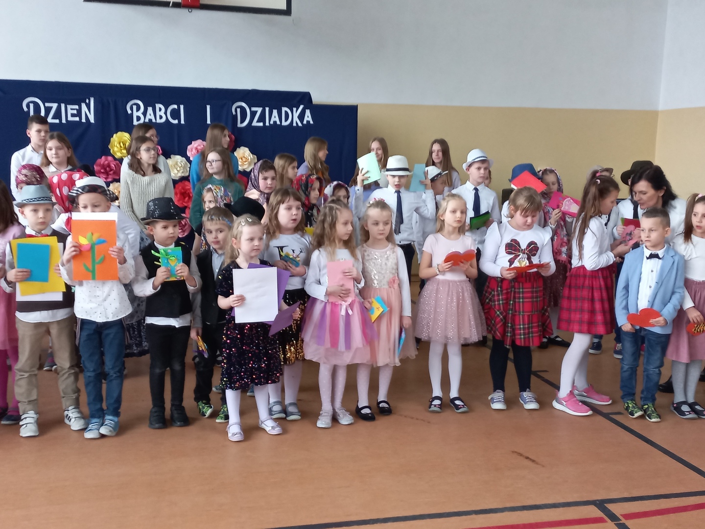 26 stycznia w naszej szkole odbyła się uroczystość z okazji Święta Babci i Dziadka. Babcia i Dziadek to bardzo ważne osoby w życiu każdego dziecka, dlatego w tym szczególnym dniu dzieci również pamiętały o swoich Babciach i Dziadkach i wspólnie ze swoimi paniami przygotowały dla nich przedstawienie. Licznie przybyli goście zasiedli na widowni i z niecierpliwością czekali na rozpoczęcie występu swoich wnucząt. Dzieci zaprezentowały program artystyczny, a następnie wręczyły własnoręcznie wykonane prezenty dla swoich ukochanych Babć i Dziadków. Gościom towarzyszyły radość, uśmiech oraz łzy wzruszenia. Następnie dzieci wraz z Babciami oraz Dziadkami zostali zaproszeni na przygotowany z tej okazji słodki poczęstunek.