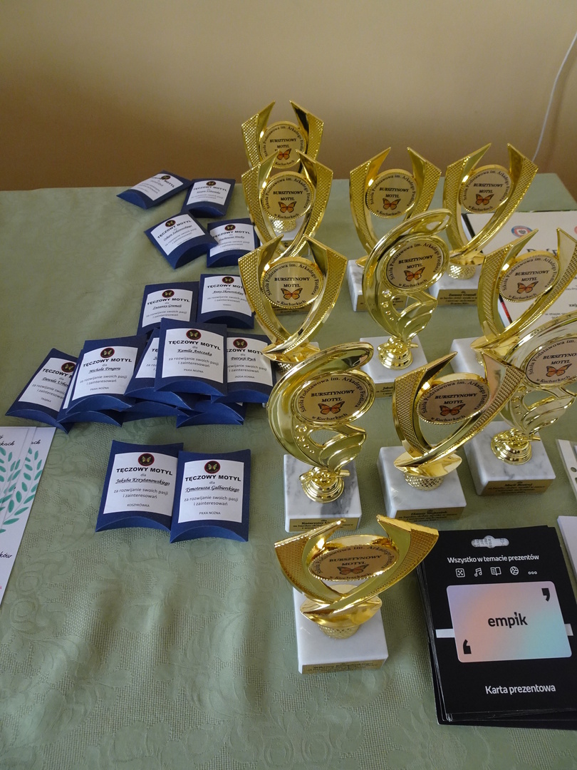 - Bursztynowy Motyl – dla ucznia ze średnią ocen 5,0 i wzorowym zachowaniem,