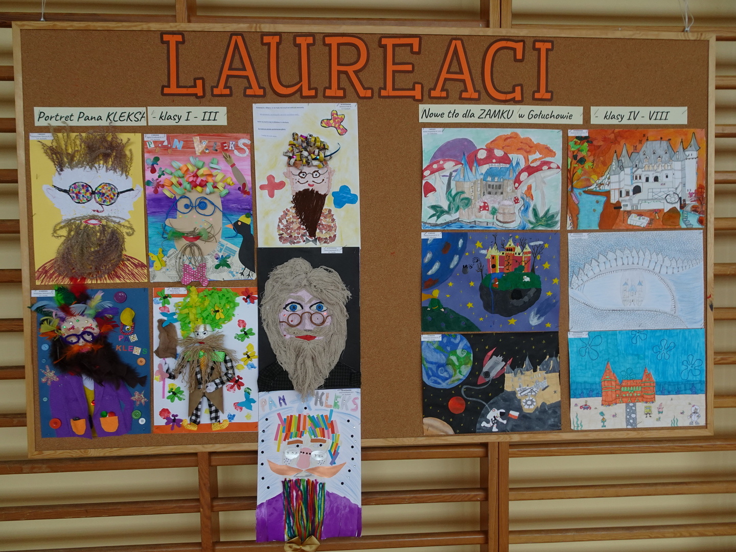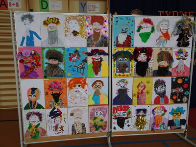 Zadaniem uczniów klas I - III było wykonanie portretu Pana Kleksa metodą kolażu. W tej kategorii rywalizowało aż 60 prac.