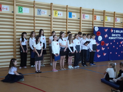 30 kwietnia 2024 roku w naszej szkole odbyła się uroczysta akademia upamiętniająca 233 rocznicę uchwalenia Konstytucji 3 Maja. Akademia rozpoczęła się wprowadzeniem sztandaru szkoły oraz odśpiewaniem Hymnu Narodowego. Następnie uczniowie z klasy V i VI przypomnieli całej społeczności szkolnej historię i okoliczności uchwalenia Konstytucji 3 Maja – uznawanej dzisiaj za fundament tradycji ustrojowej państwa polskiego.