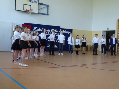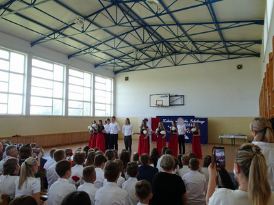 Na zakończenie krótką część artystyczną przedstawiły dzieci z klasy III, które ukończyły I etap edukacyjny i pożegnały się ze swoją wychowawczynią panią Agatą Prais. Po ich występie głos zabrali jeszcze uczniowie klasy ósmej, którzy podziękowali wszystkim nauczycielom.