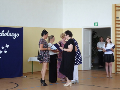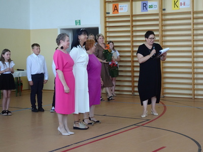 Następnie pani dyrektor złożyła podziękowania nauczycielkom, które w tym roku szkolnym odeszły na zasłużoną emeryturę – pani Marii Bogacz, pani Barbarze Jędrzejczak i pani Małgorzacie Zdunek.