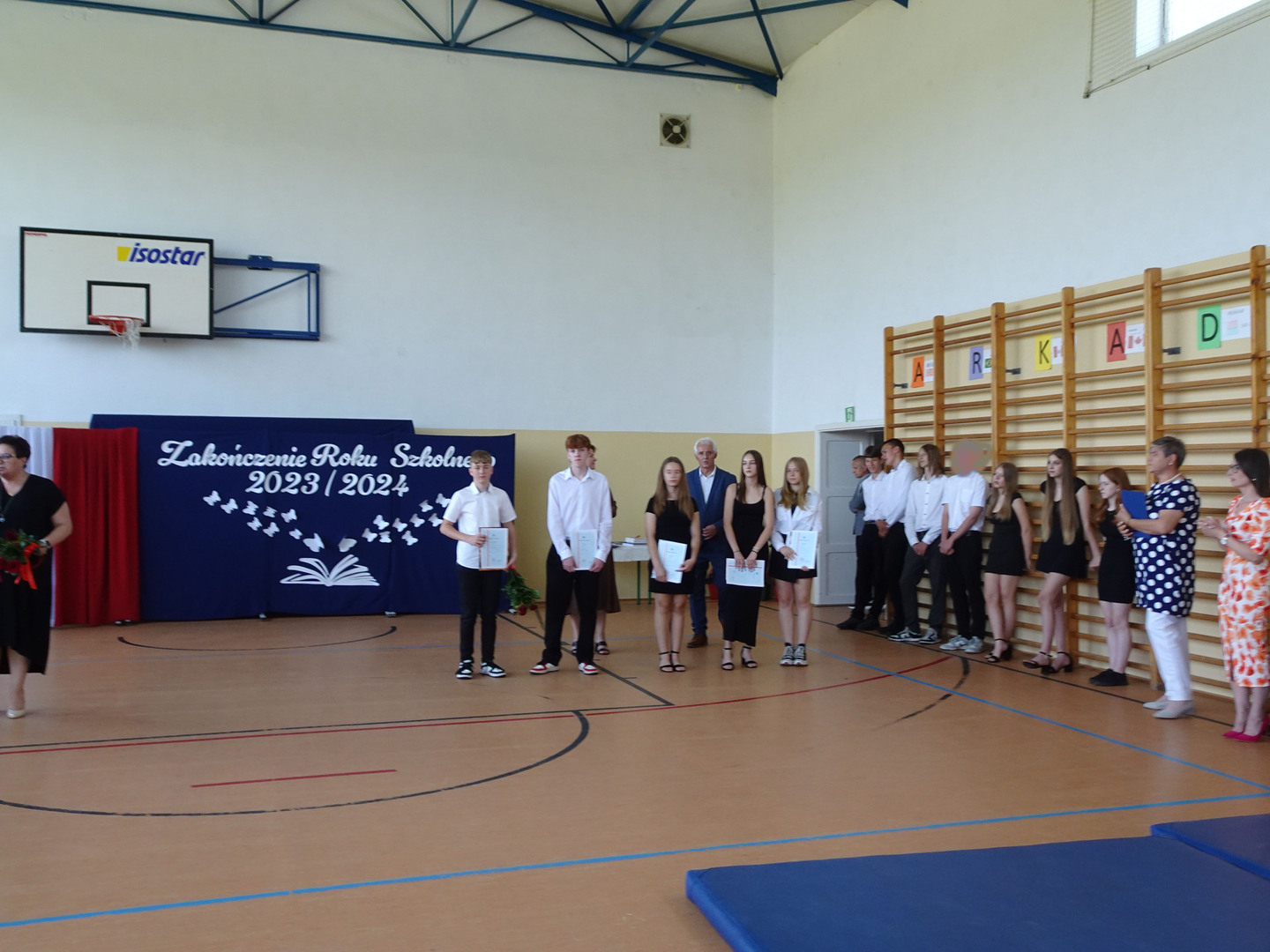 21 czerwca 2024 r. o godzinie 8:00 w sali gimnastycznej naszej szkoły odbyło się uroczyste zakończenie roku szkolnego 2023/2024.