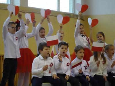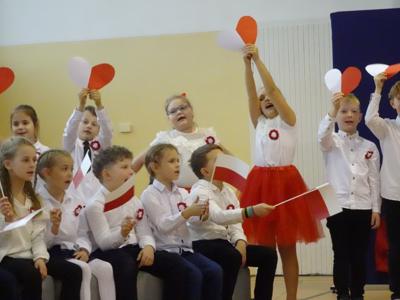 Narodowe Święto Niepodległości obchodzone 11 listopada to ważne i piękne święto – święto każdego Polaka. W szkole obchodzimy go z szacunkiem i powagą, pamiętając o wydarzeniach, które miały miejsce w 1918 roku, kiedy to Polska po 123 latach niewoli znów pojawiła się na mapie Europy i stała się wolnym, niepodległym państwem. W 106 rocznicę odzyskania przez Polskę Niepodległości uczniowie z klas I – III przypomnieli lata niewoli narodu polskiego i jego dążenia do odzyskania niepodległości. W trakcie uroczystości można było usłyszeć przepiękne utwory muzyczne oraz wiersze o tematyce patriotycznej.