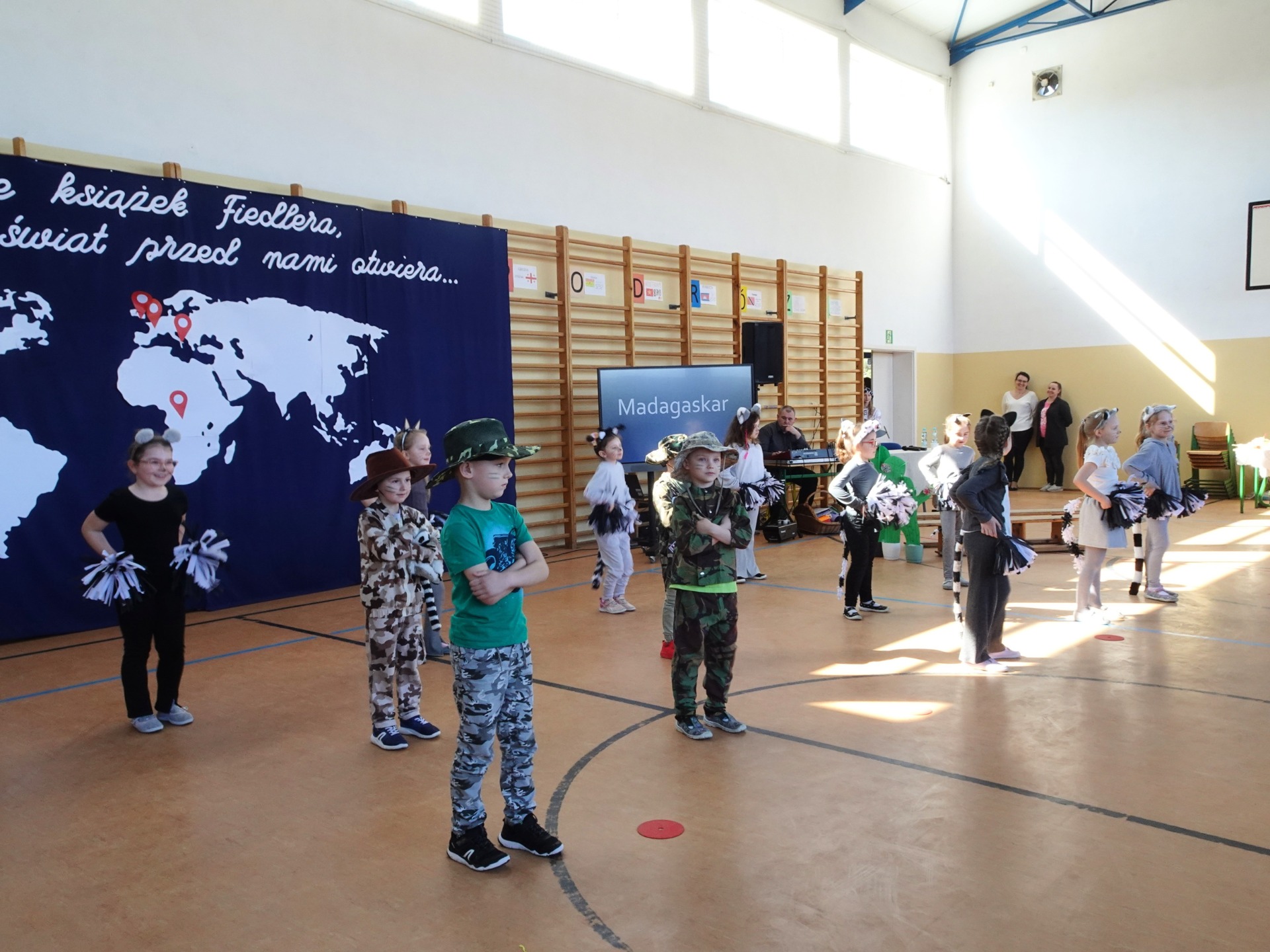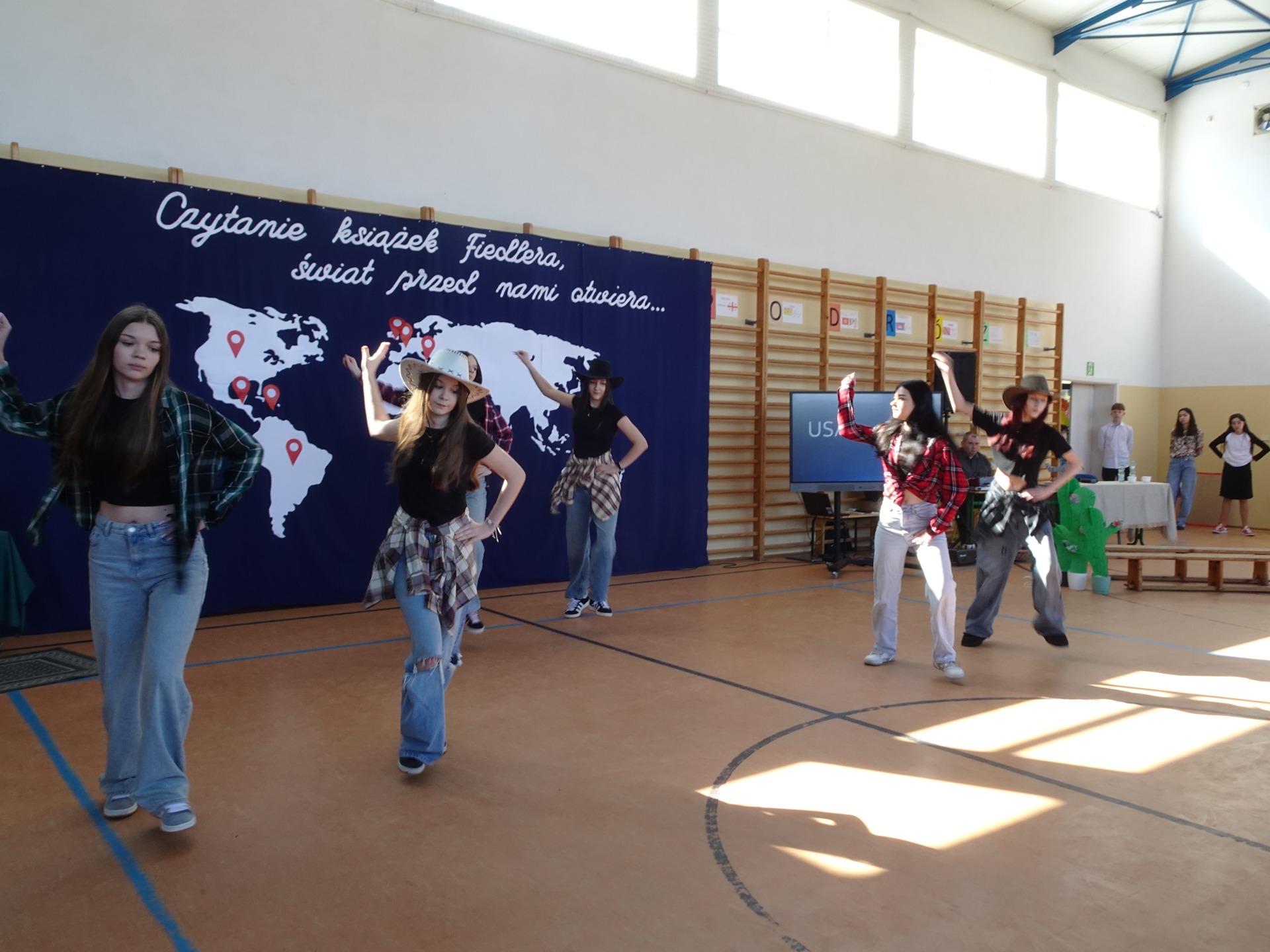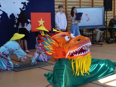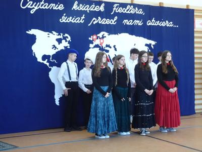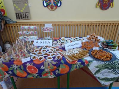 Uczniowie zabrali nas w niezwykłą podróż o świecie śladami Arkadego Fiedlera. Odwiedziliśmy: Francję, Anglię, Afrykę, Madagaskar, Brazylię, Meksyk, Stany Zjednoczone i Wietnam. Każda klasa przygotowała również potrawy charakterystyczne dla danego regionu.