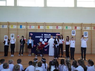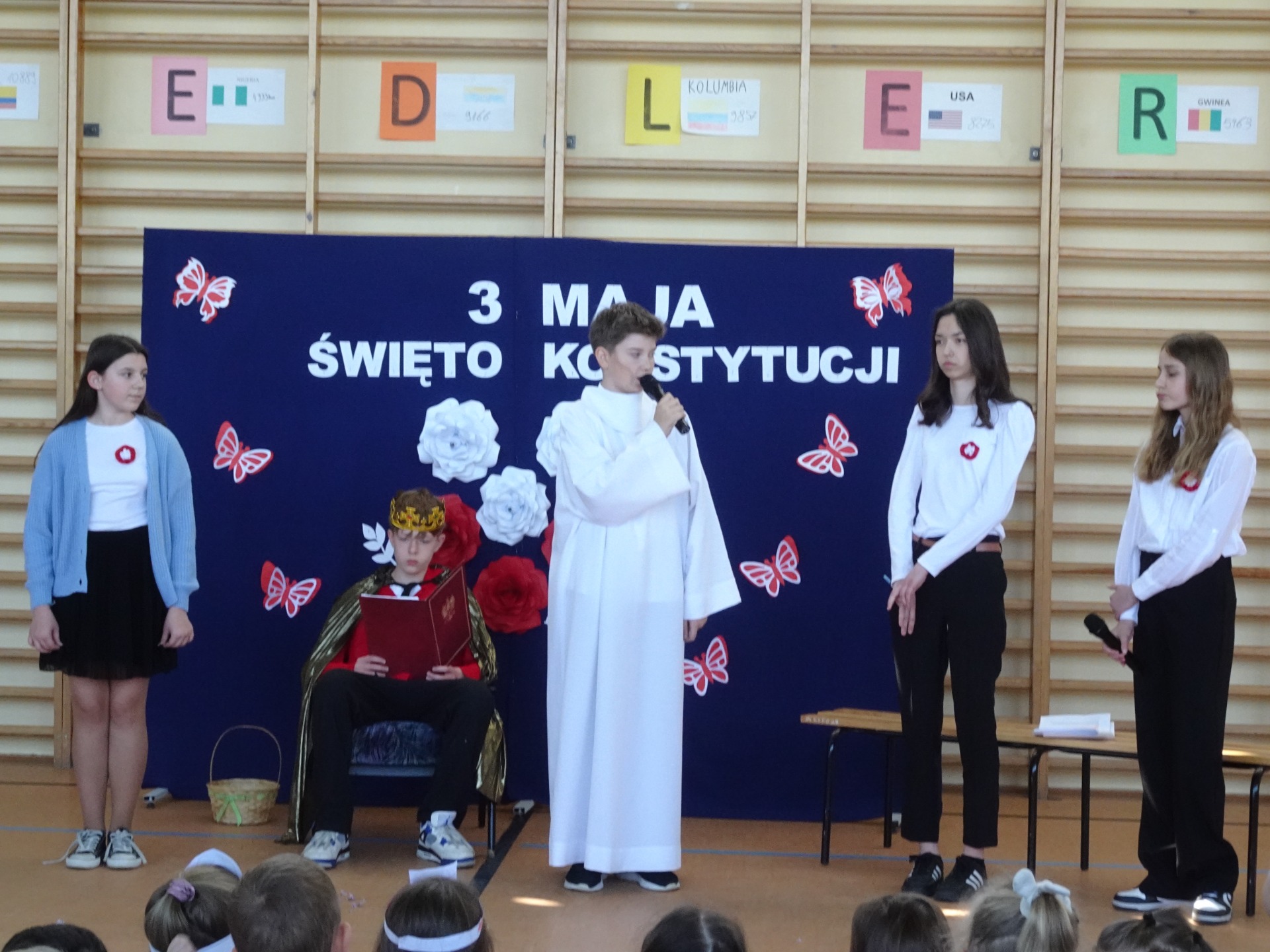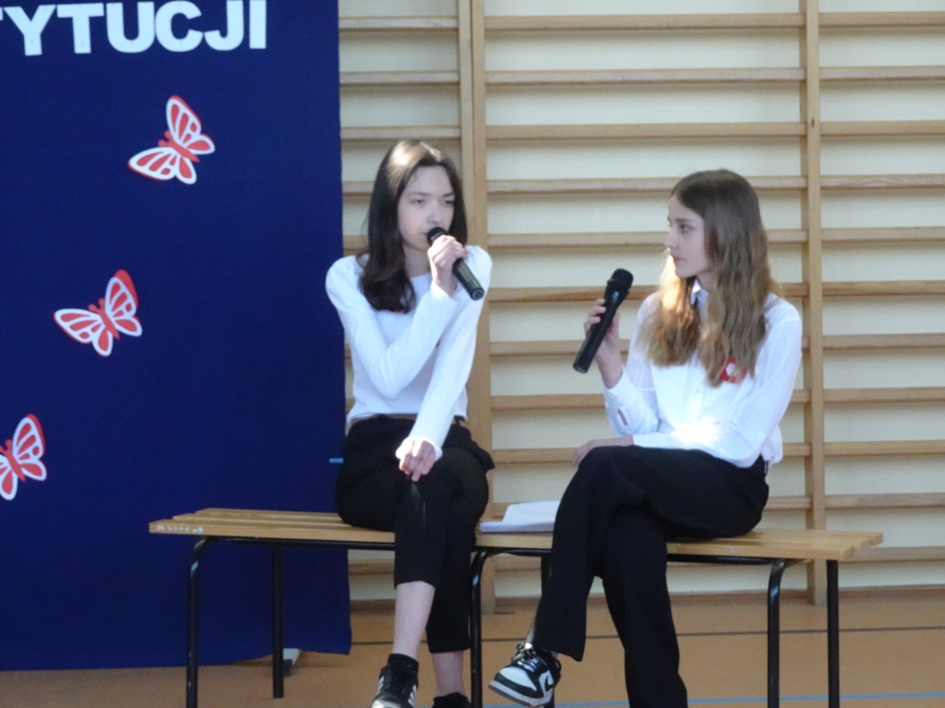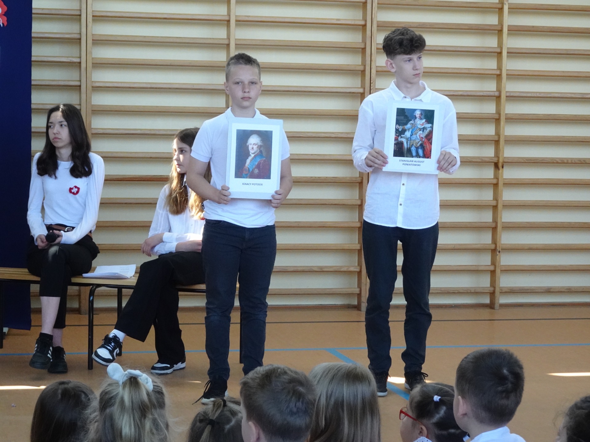 Uczniowie klasy 5 i 6 przedstawili historię uchwalenia Konstytucji 3 Maja, jej autorów i główne założenia. Przypomnieli okoliczności powstania ustawy oraz jej znaczenie dla ratowania Rzeczpospolitej. Opowiedzieli jak 3 maja 1791 r. Polacy uchwalili pierwszą w Europie i drugą na świecie nowoczesną konstytucję, która zakładała wiele istotnych reform.