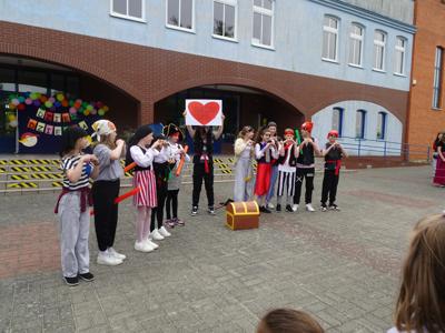 Uroczystość rozpoczęła pani Dyrektor witając wszystkich uczniów, przedszkolaków oraz ich rodziny, życząc wszystkim udanej zabawy i wielu niezapomnianych wrażeń.
