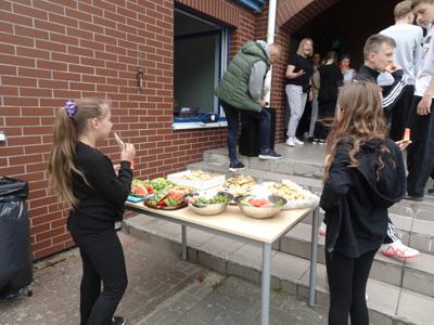 W świetlicy szkolnej przygotowano bufet z ciastami upieczonymi przez rodziców oraz napojami.