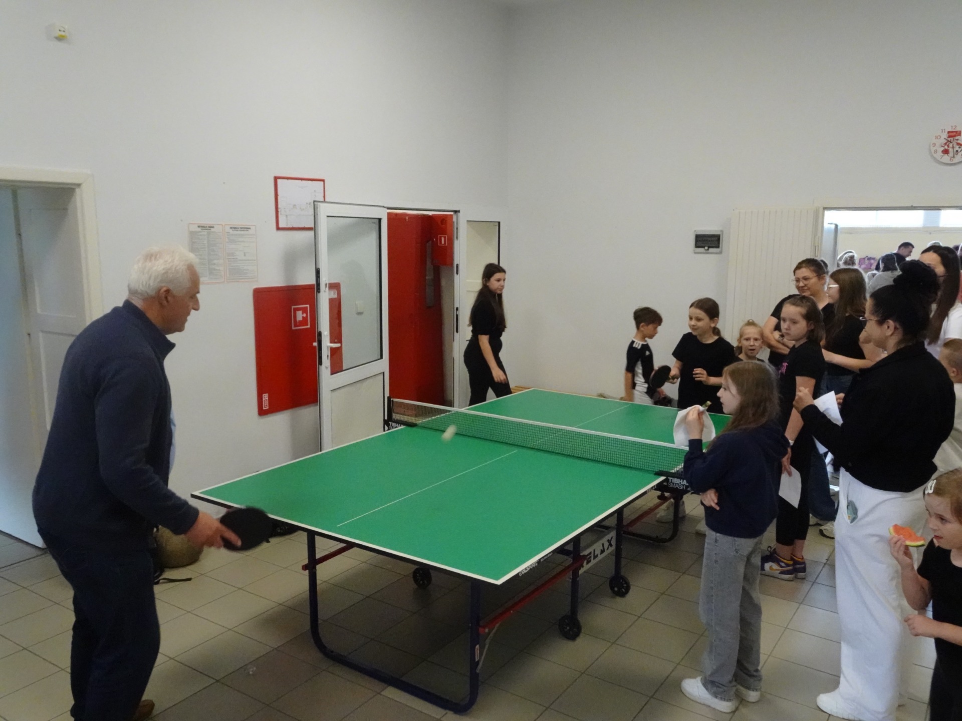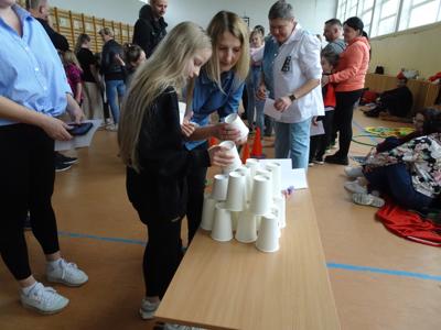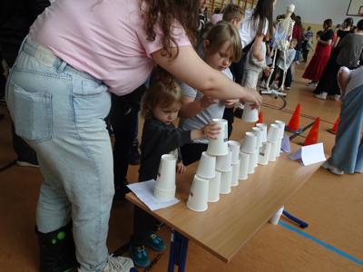 W pełni sił i z nową energią, dzieci i ich rodziny wzięły udział w zabawach i konkurencjach sportowych . Na uczestników czekały różnorodne stacje zadaniowe, które dostarczyły mnóstwo emocji i okazji do wspólnej zabawy: układanie rodzinnej wieży z kubków na czas, rzucanie krążkiem na pachołki, fotobudka, bieg z tacą z kubeczkami, rzuty kaloszem do celu, strzały na bramkę (hokej), rozpoznawanie kontynentów i części szkieletu, tor przeszkód z robotami Photonami, rzuty do kosza, gra w tenisa stołowego.