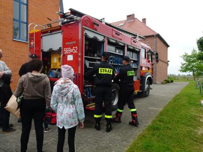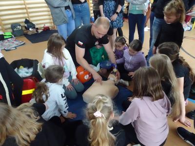 Straż Pożarna przeprowadziła krótki kurs udzielania pierwszej pomocy dla chętnych dzieci.
