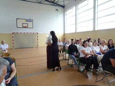 Na początku Pani Dyrektor Lucyna Kempińska-Cieślak przywitała uczniów, rodziców, nauczycieli, pracowników szkoły oraz zaproszonych gości: zastępcę Wójta Gminy Gołuchów pana Zdzisława Gorzelińskiego, Przewodniczącego Rady Gminy Gołuchów pana Romana Rauhuta oraz Radną Gminy Gołuchów panią Annę Witkowską.