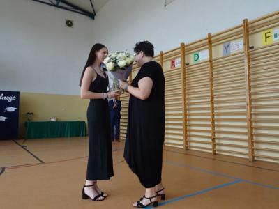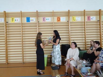 Pani dyrektor oraz przewodnicząca rady rodziców pani Karolina Skowrońska podziękowały także pani Justynie Banasiak odchodzącej z Rady Rodziców.