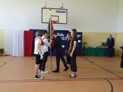 Po ślubowaniu tegorocznych absolwentów nastąpiło uroczyste przekazanie sztandaru szkoły młodszym kolegom.
