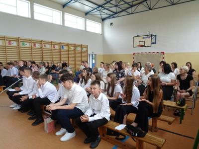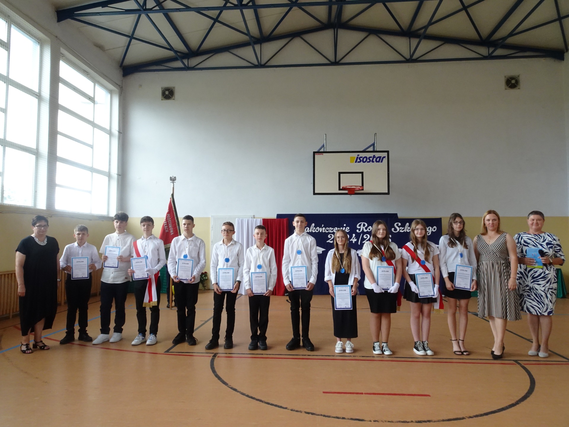 27 czerwca 2025 r. o godzinie 10:30 w sali gimnastycznej naszej szkoły odbyło się uroczyste zakończenie roku szkolnego 2024/2025 klas VII-VIII.