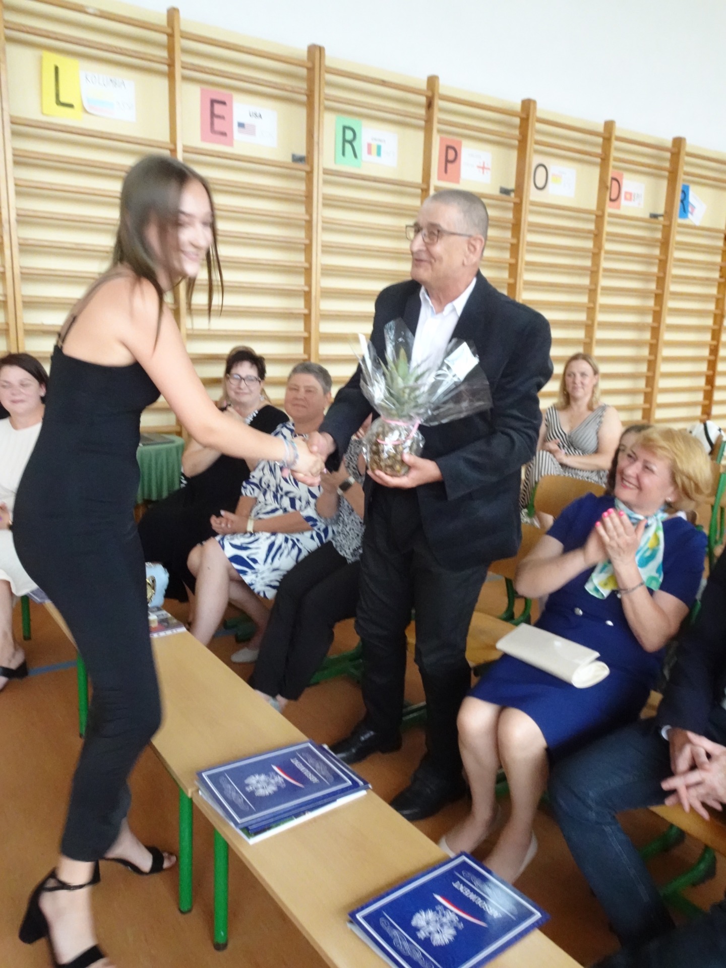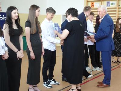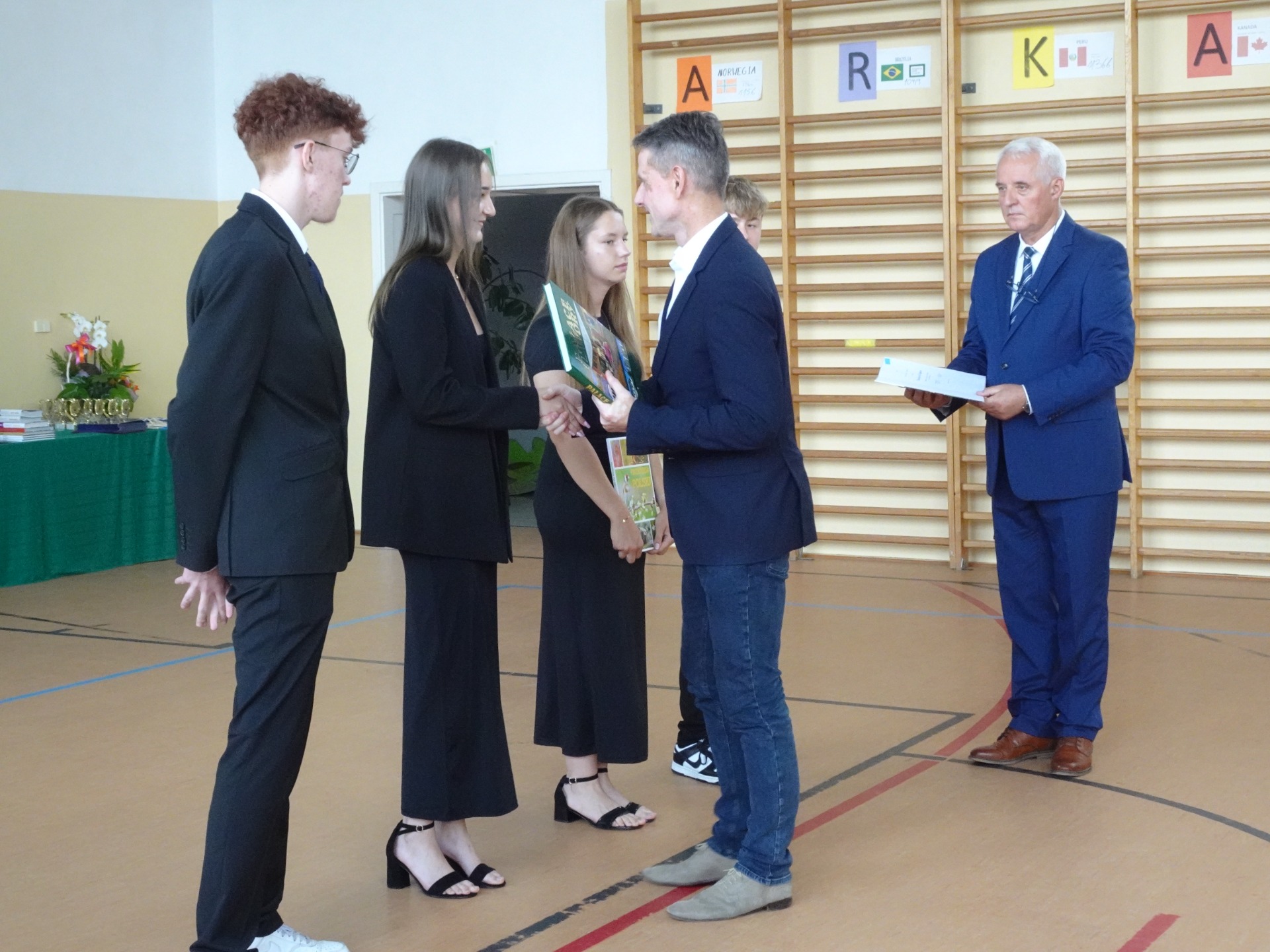 Zastępca Wójta Gminy Gołuchów pan Zdzisław Gorzeliński wręczył nagrody Wójta dla najlepszych absolwentów. Otrzymali je: