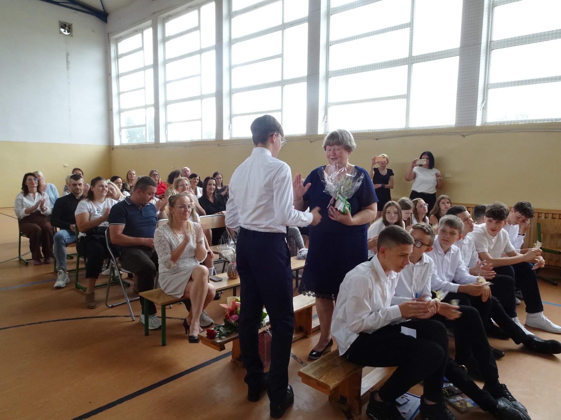 Wychowawca klasy VIII pan Józef Boniec w kilku słowach pożegnał absolwentów.
